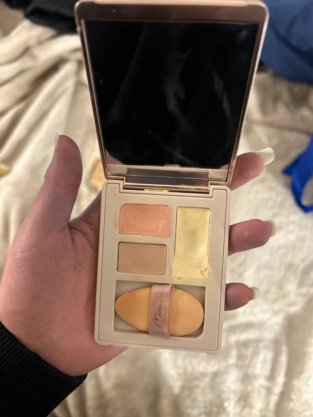 A palette with three shades of concealer and a brightening shade. Includes a sponge applicator. Perfect for color correcting blemishes and dark circles!