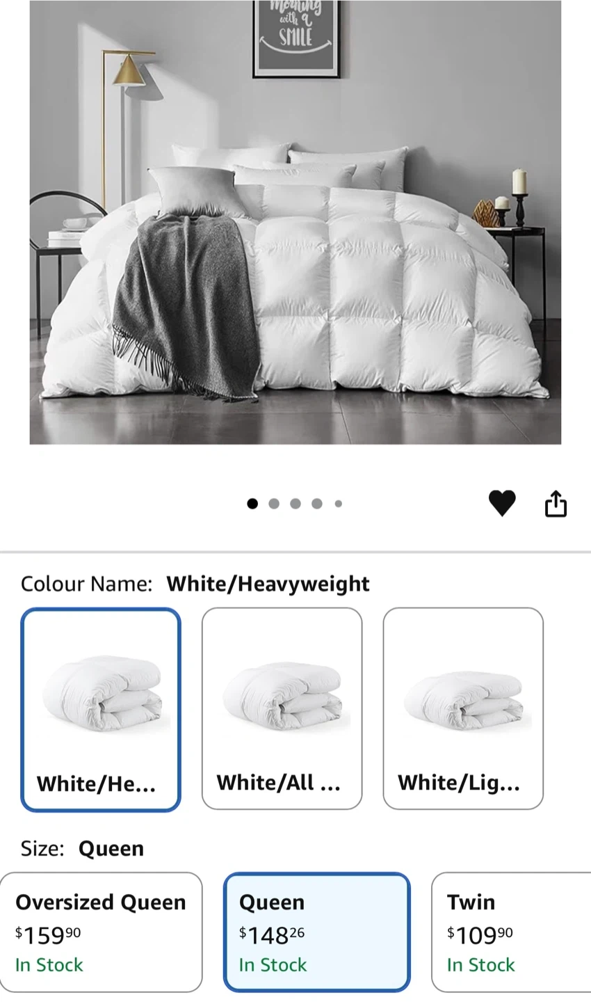 Snuggle up with this queen-size down comforter! It's white and heavyweight, perfect for those chilly nights. It's designed to be soft and fluffy for a comfortable and peaceful sleep. Filled with premium feathers and down for a fresh, fluffy, warm, and green sleep