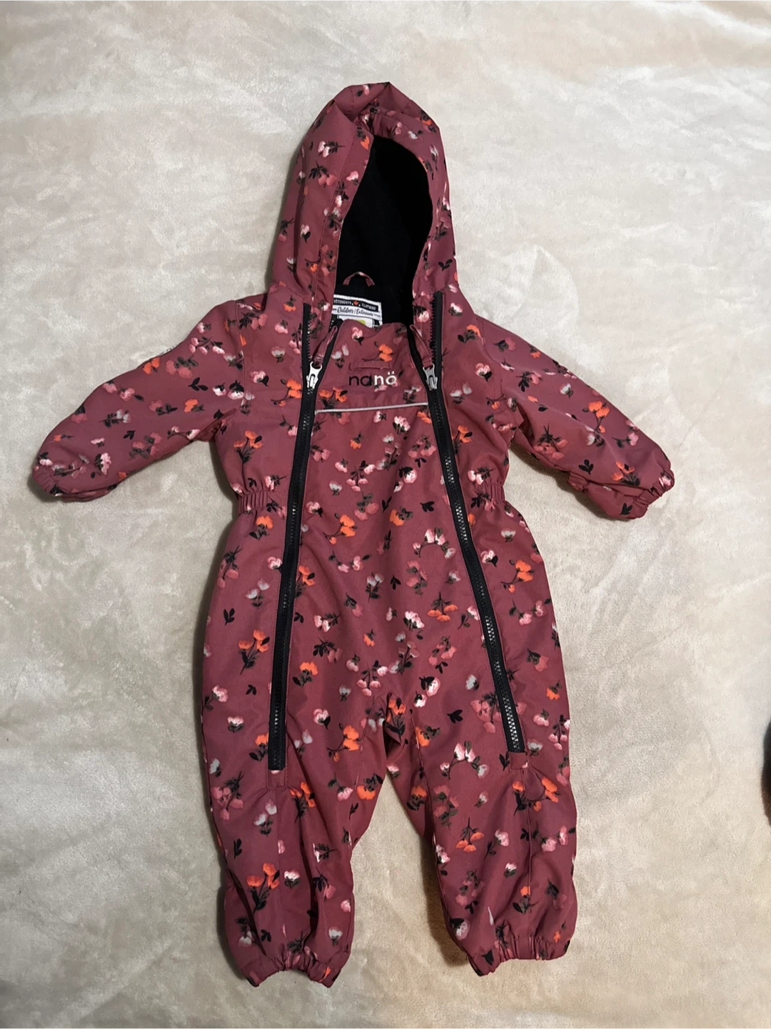 Keep your little one warm and stylish with this adorable Nona snowsuit! It features a lovely floral pattern and is perfect for outdoor adventures. The size is 9 months (74cm).