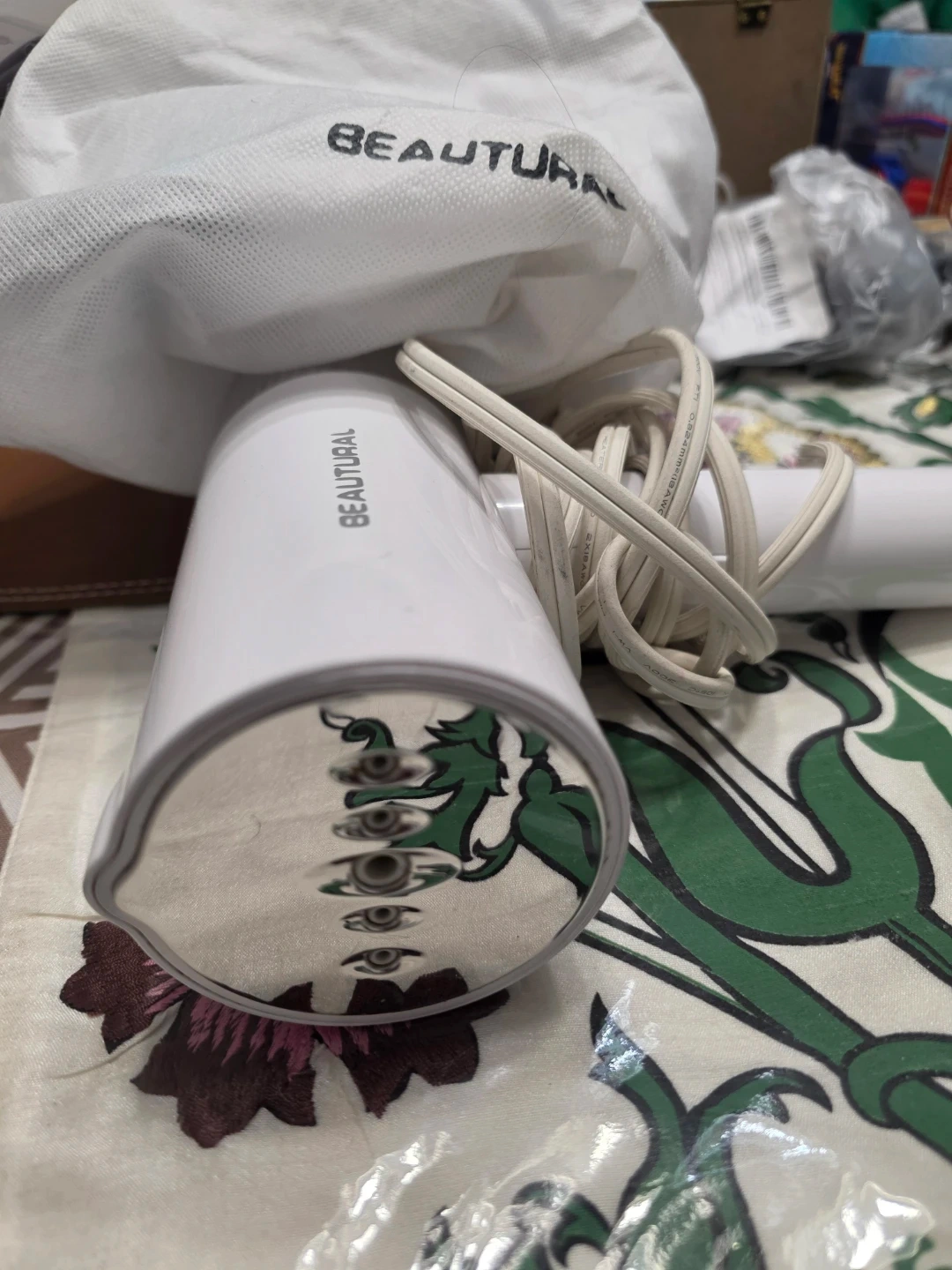 This is a BEAUTURAL steamer for clothes. It's a foldable handheld garment wrinkle remover. It heats up fast, ready in 30 seconds. Includes a storage bag. New in Amazon for 42.97+tax.