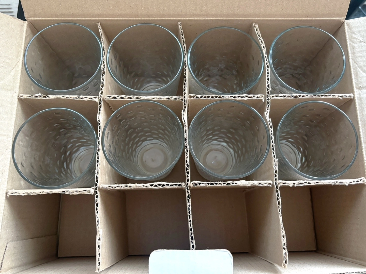 A set of 8 glasses from the stylish Dots Glass Set, featuring a clean, clear design with textured dots for added flair.