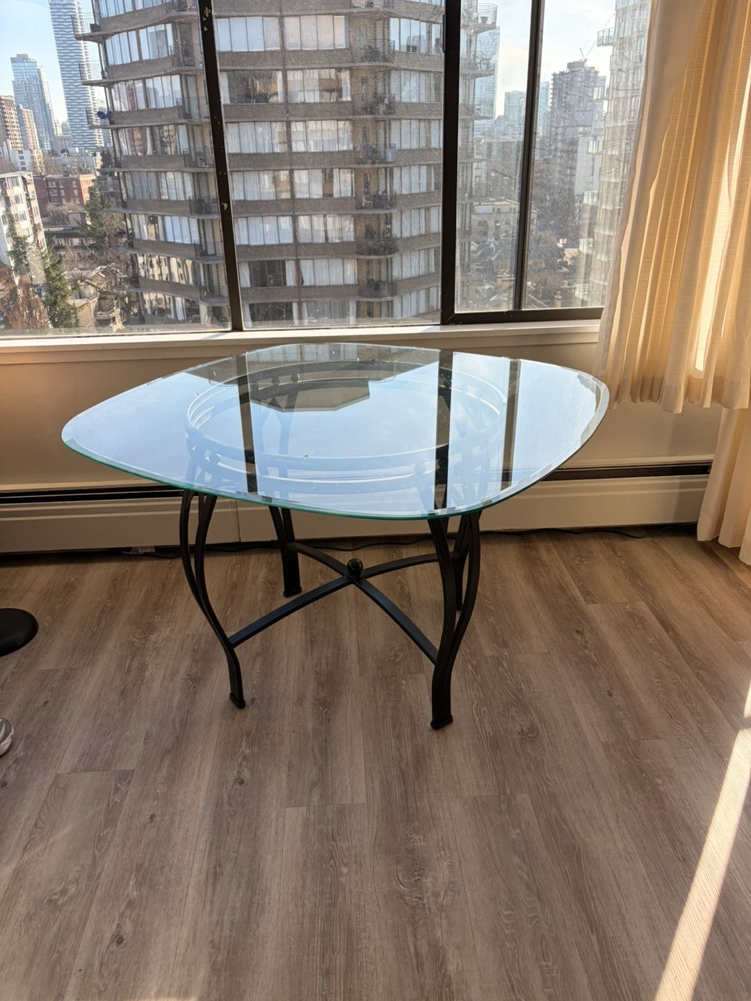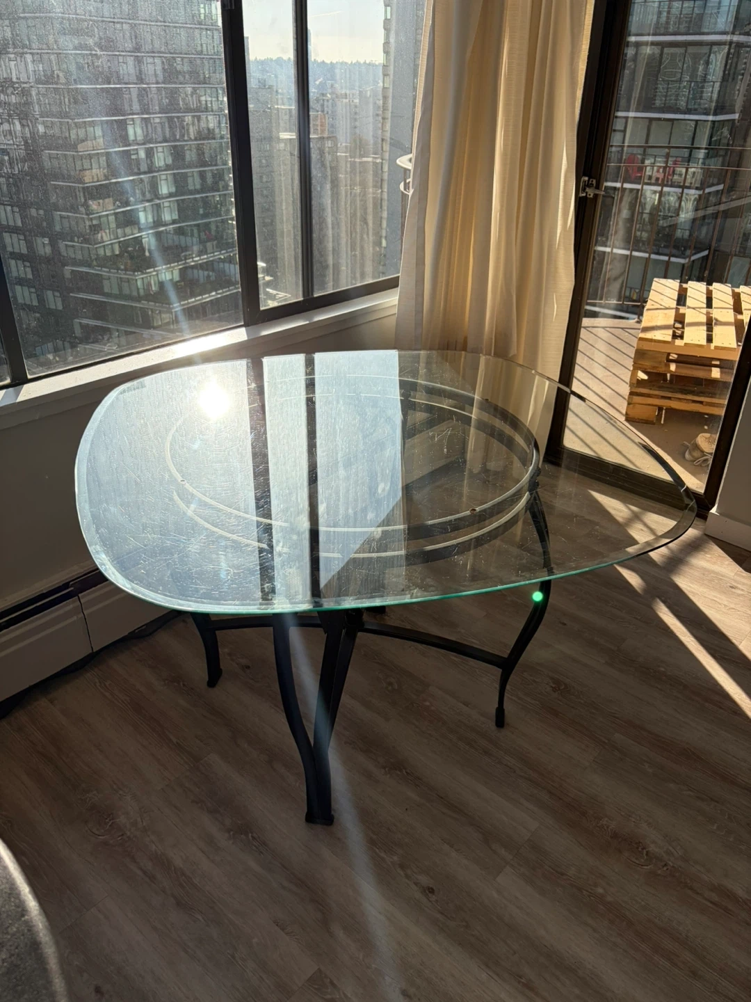 Glass Top Dining Table with Black Metal Base