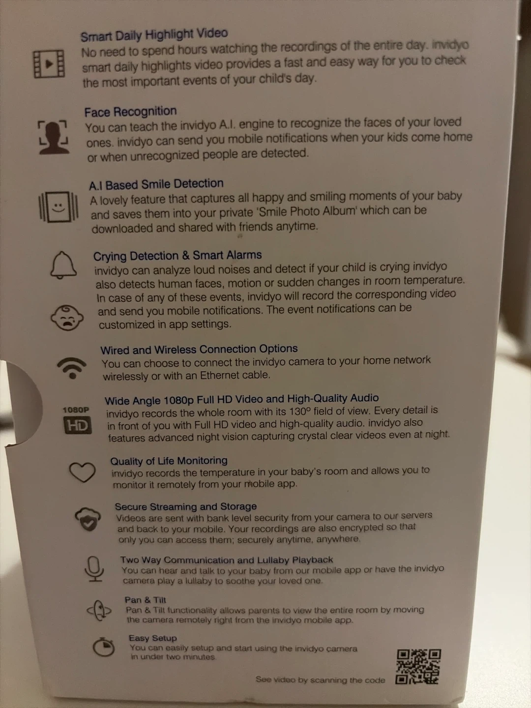 Selling a brand new Invidyo World's Smartest Video Baby Monitor, still in its original box! It's powered with A.I. and includes: