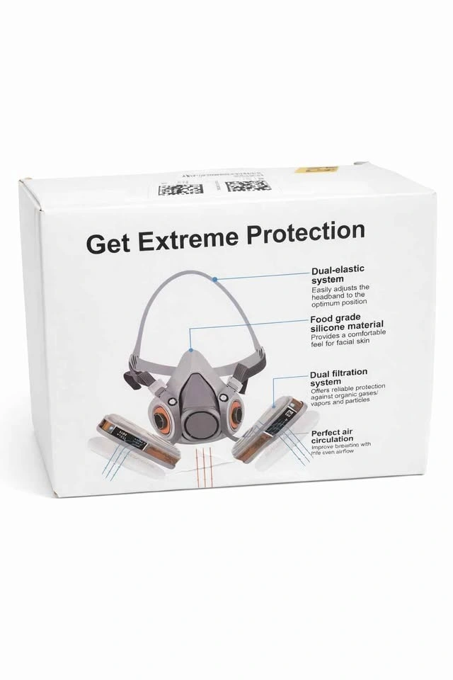 Dual-filter half-face respirator mask (food-grade silicone seal) Six extra filter cartridges