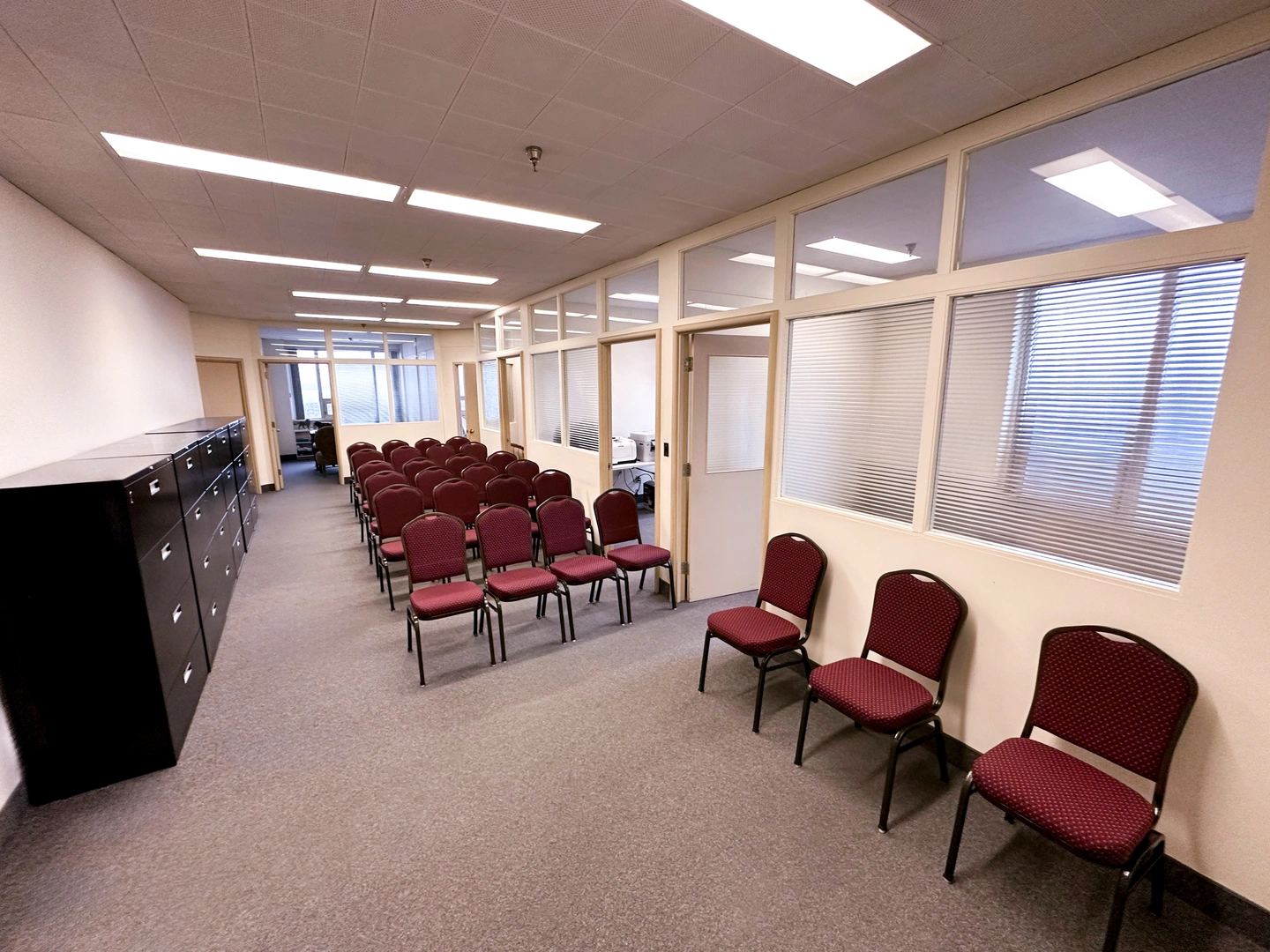 27 Like-New Banquet Stacking Chairs - Burgundy - Hamilton