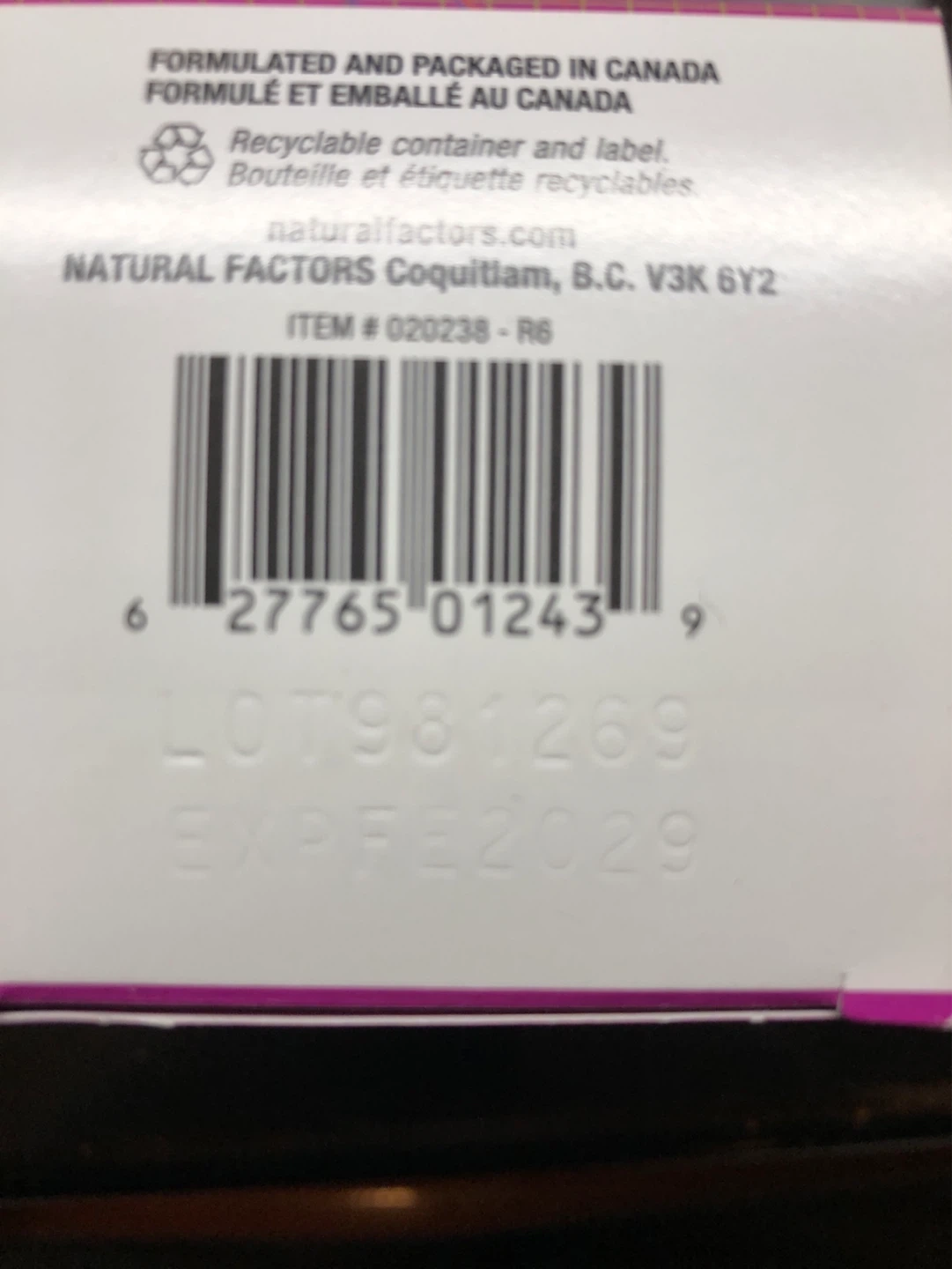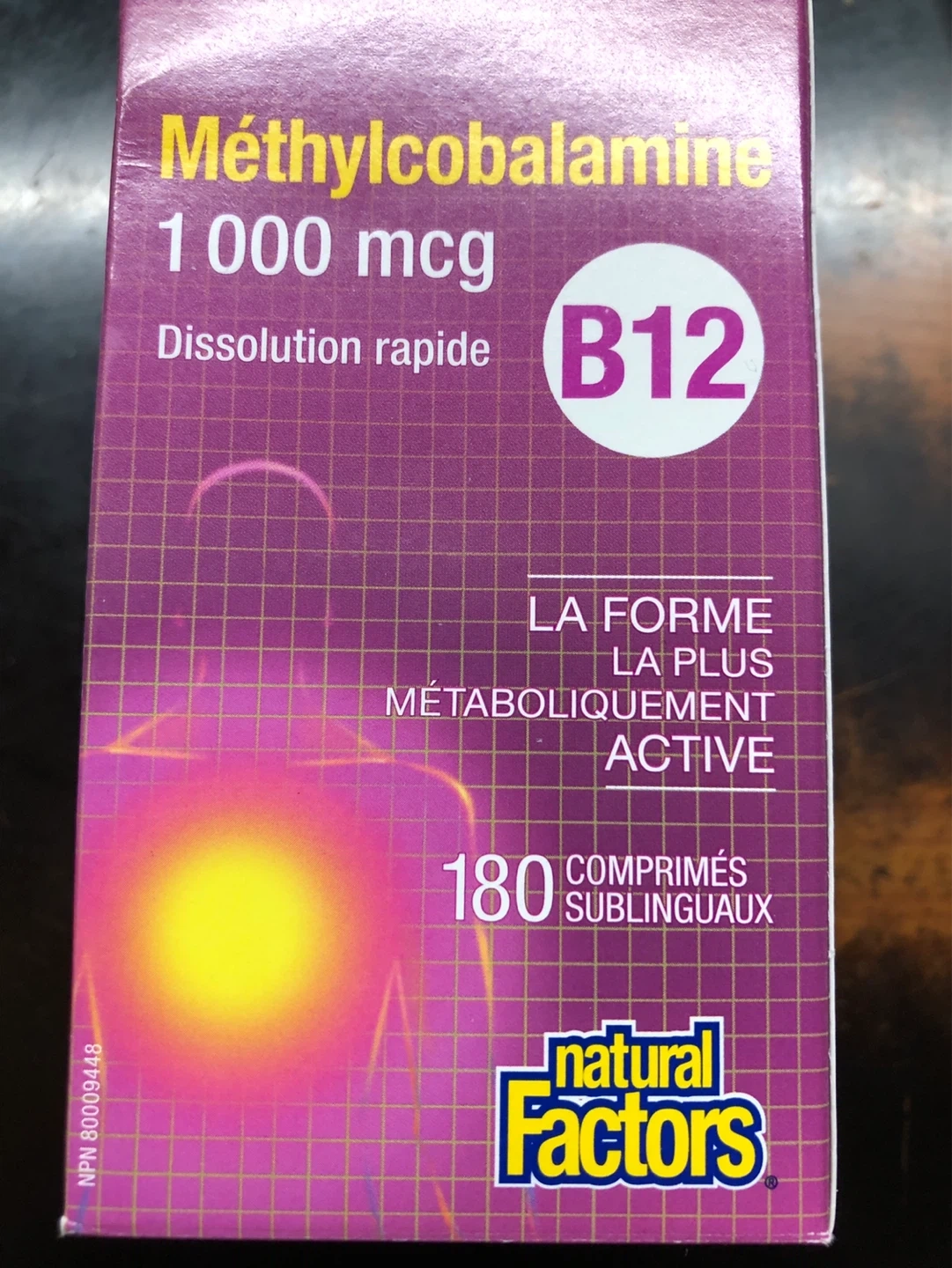 Natural Factors Methylcobalamine B12 1000 mcg. Formulated and packaged in Canada. 180 sublingual tablets.