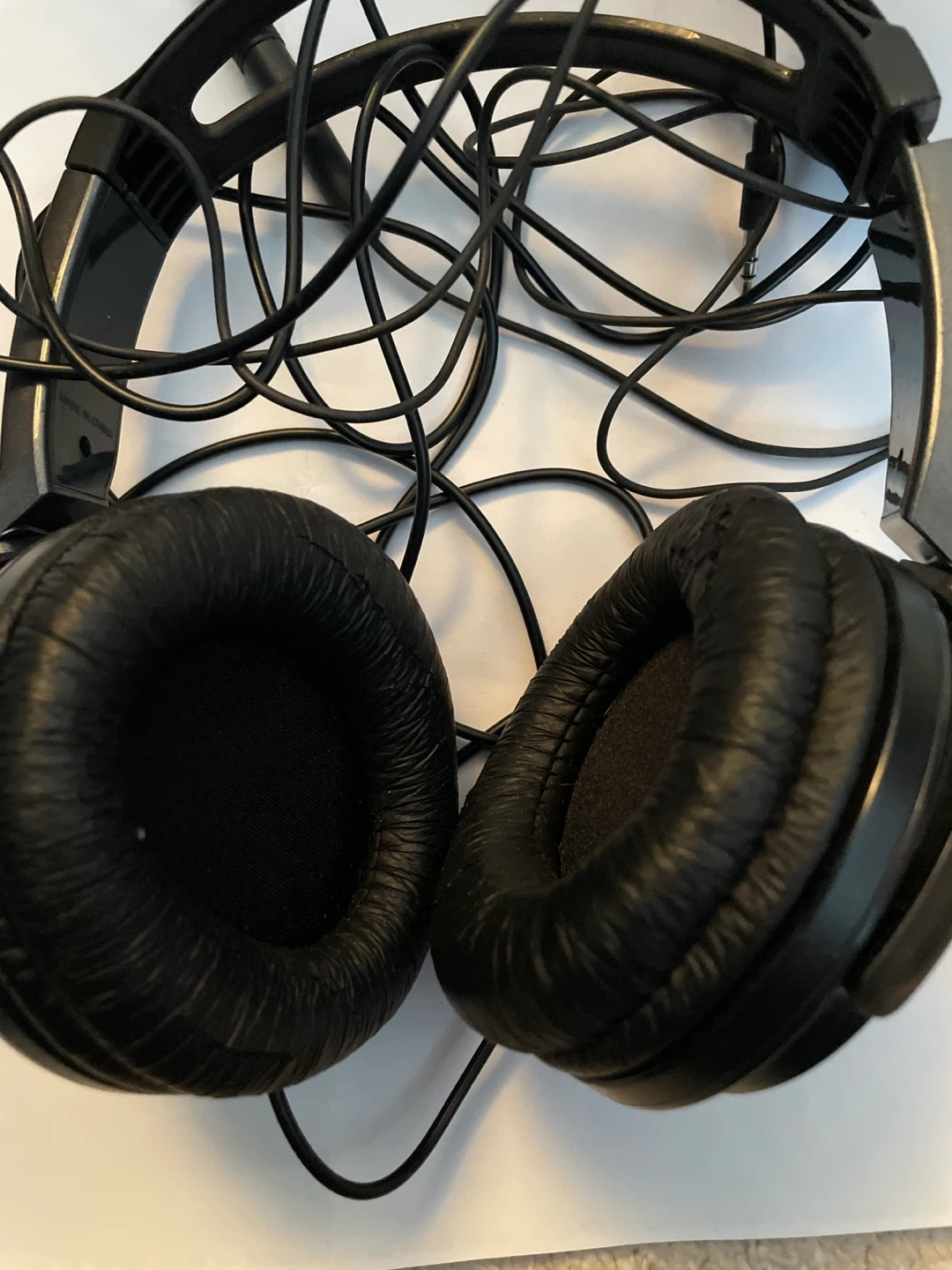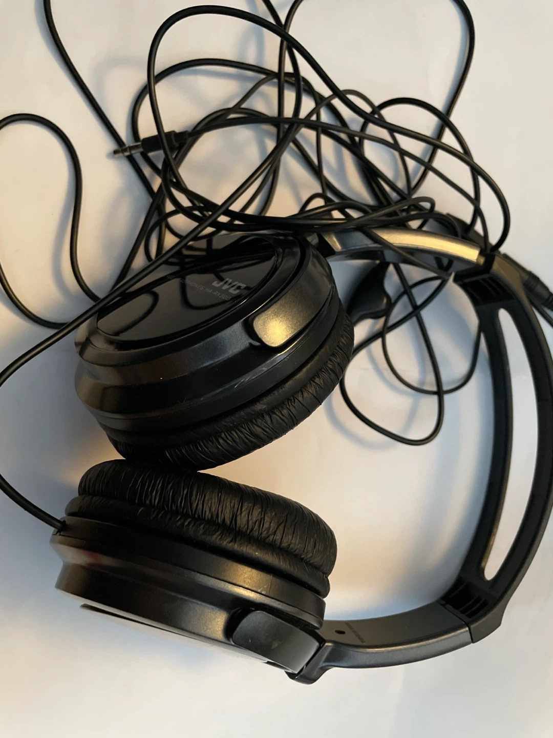 JVC stereo headphones, model HA-RX300. These are over-ear headphones with a black finish. They feature padded earcups for comfort. Great for listening to music or podcasts!
