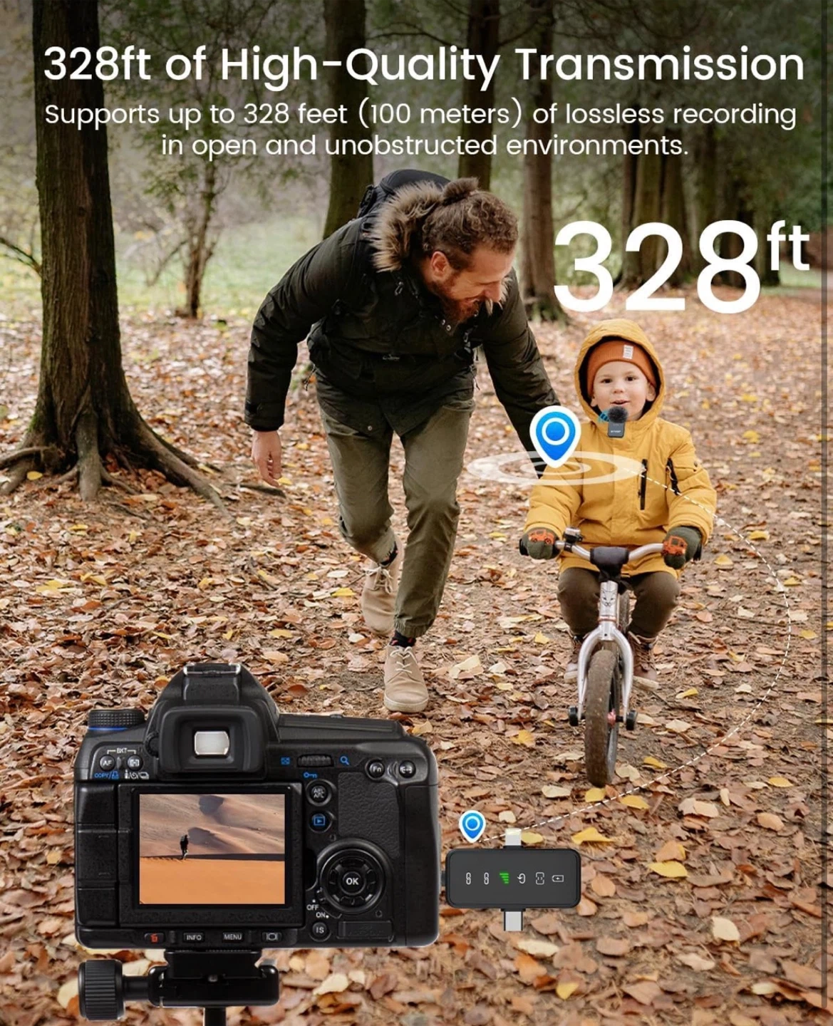 It supports up to 328 feet of high-quality transmission for lossless recording in open environments.