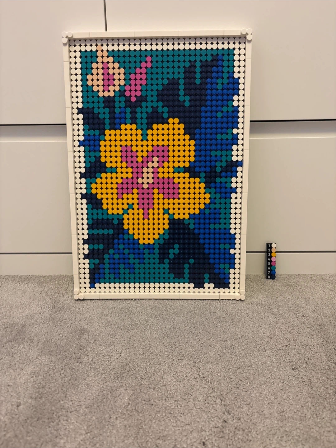 LEGO Dots art kit with a colourful flower and butterfly design. Includes all pieces for the mosaic. It's a fun way to decorate a space!