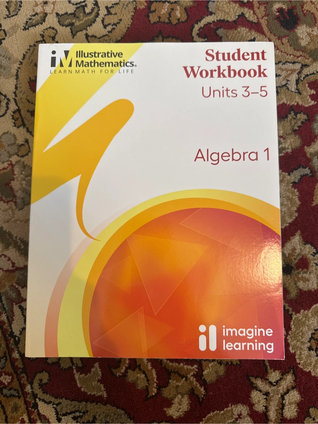 This is the Algebra 1 Student Workbook from Illustrative Mathematics, covering Units 3-5. It's part of the Imagine Learning curriculum. The workbook is designed for learning math.