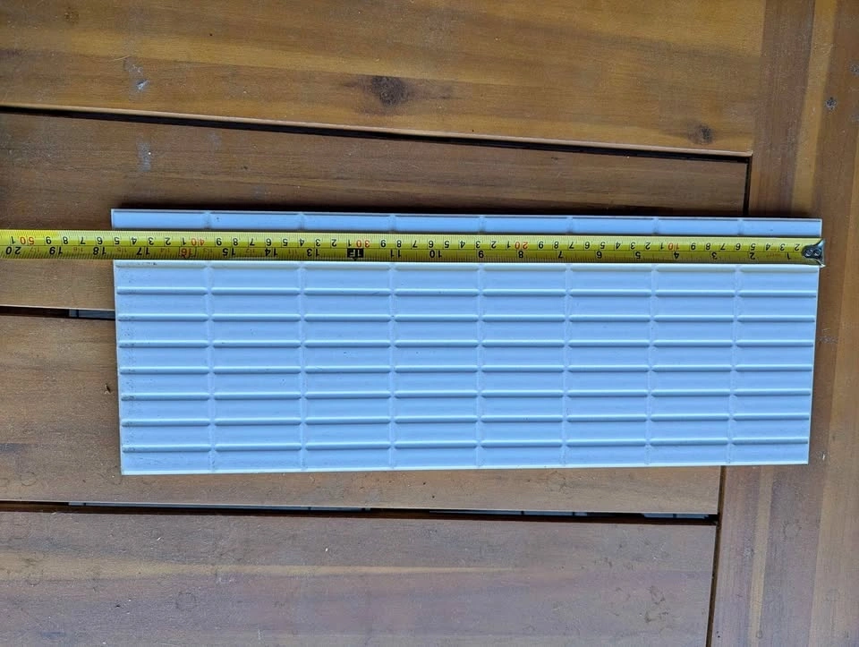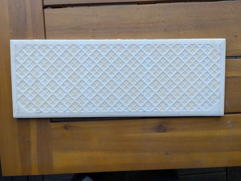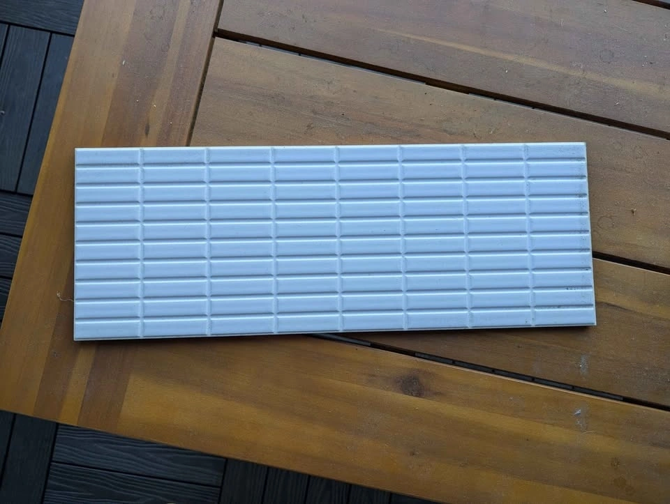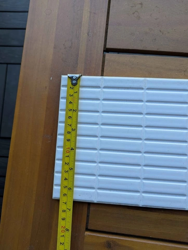 New ceramic tiles, leftovers from a kitchen backsplash redo. 14 in total, with 2 chipped in the corner. Could be great for a small kitchen, garden decoration, or an art project. Approx. 4 inches tall x 16 inches long.