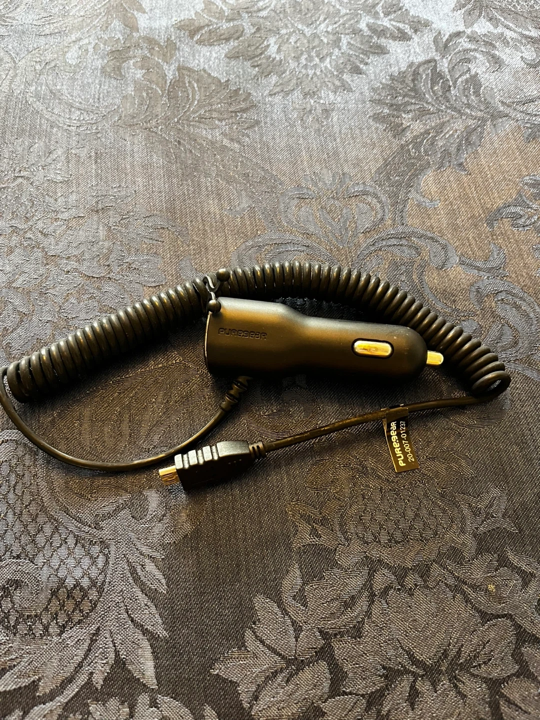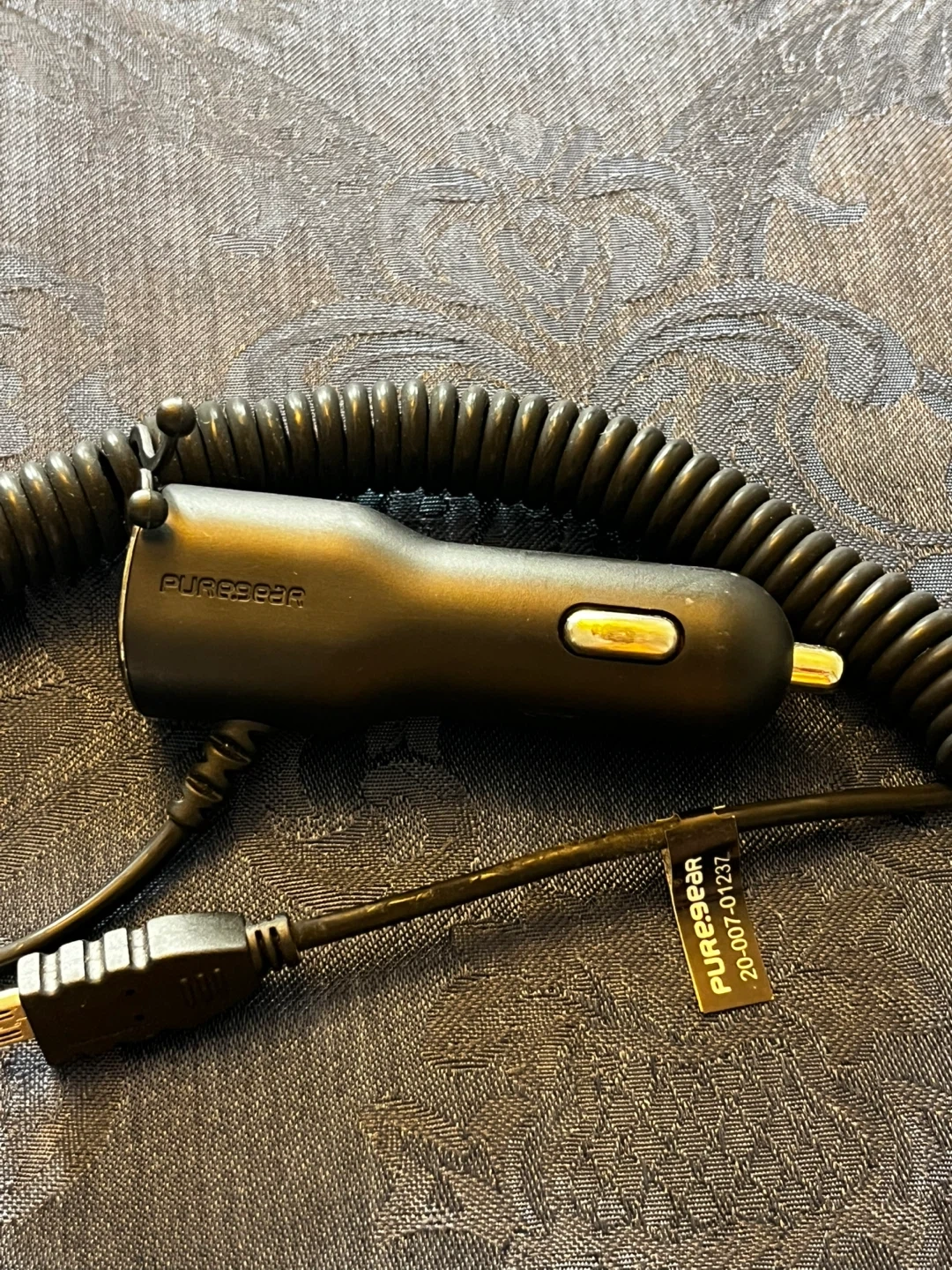 Power up on the go with this Puregear car charger! It's used, but still ready to keep your devices juiced up during those long drives. Perfect for road trips or just commuting around town. It has a coiled cord to prevent tangling.