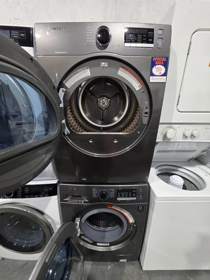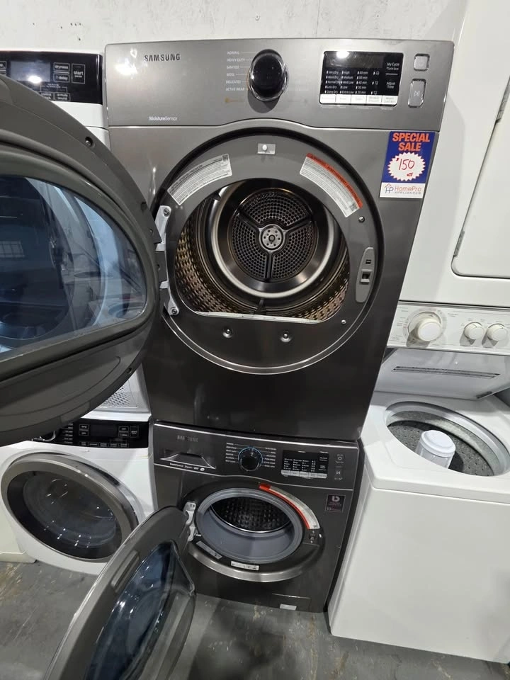 Upgrade your laundry setup with this Samsung Washer & Dryer set in a sleek graphite finish. This matching, stackable pair is perfect for condos, townhomes, or laundry rooms where space matters. Details: Brand: Samsung Color: Graphite Stackable set (washer + dryer) Professionally serviced and fully tested Includes 30-day warranty for peace of mind. Clean, modern look with reliable performance. Pick Up: Surrey, near 148 St & 64 Ave. Price: $___ This is a dependable, high-quality set that’s ready to go — perfect for homeowners, rentals, or investment properties.