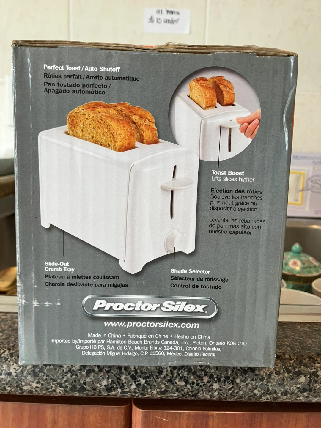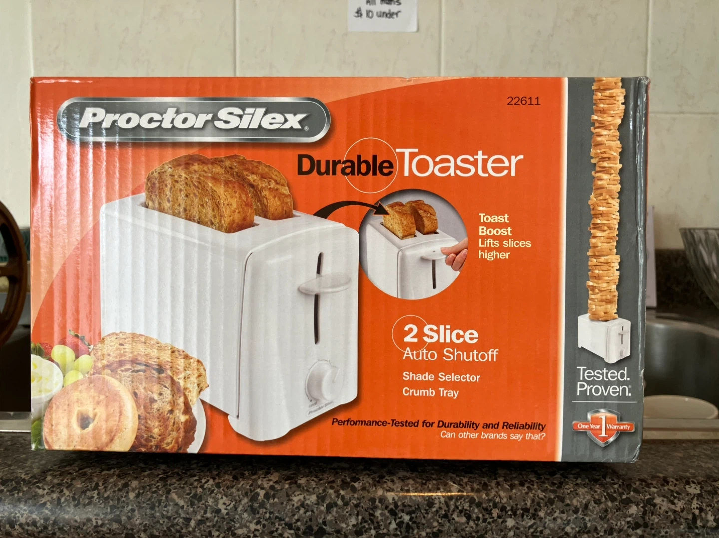 This Proctor Silex durable toaster features auto shutoff and a shade selector. It has a slide-out crumb tray for easy cleaning. Perfect for toasting bread, bagels, and more!