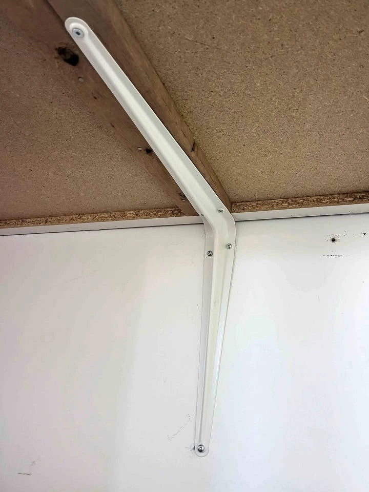 Shelf brackets with platforms. Total 3 sets containing 6 white brackets (2 brackets in each set). $15 each set, or $40 for all three sets.