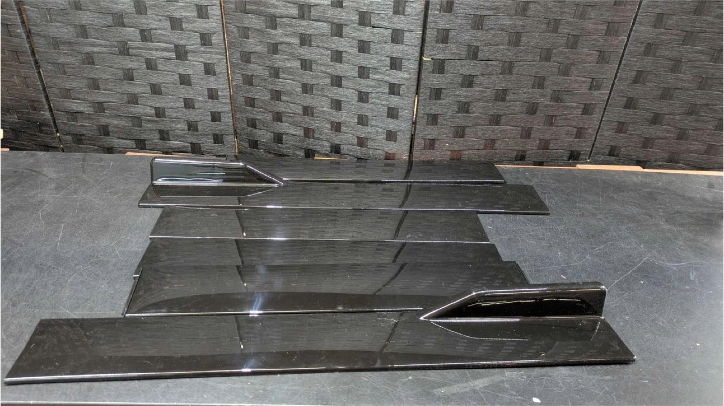Offering a car body kit with multiple pieces. Features a shiny black finish. Would be a great way to improve the look of your vehicle and customize it to your liking.