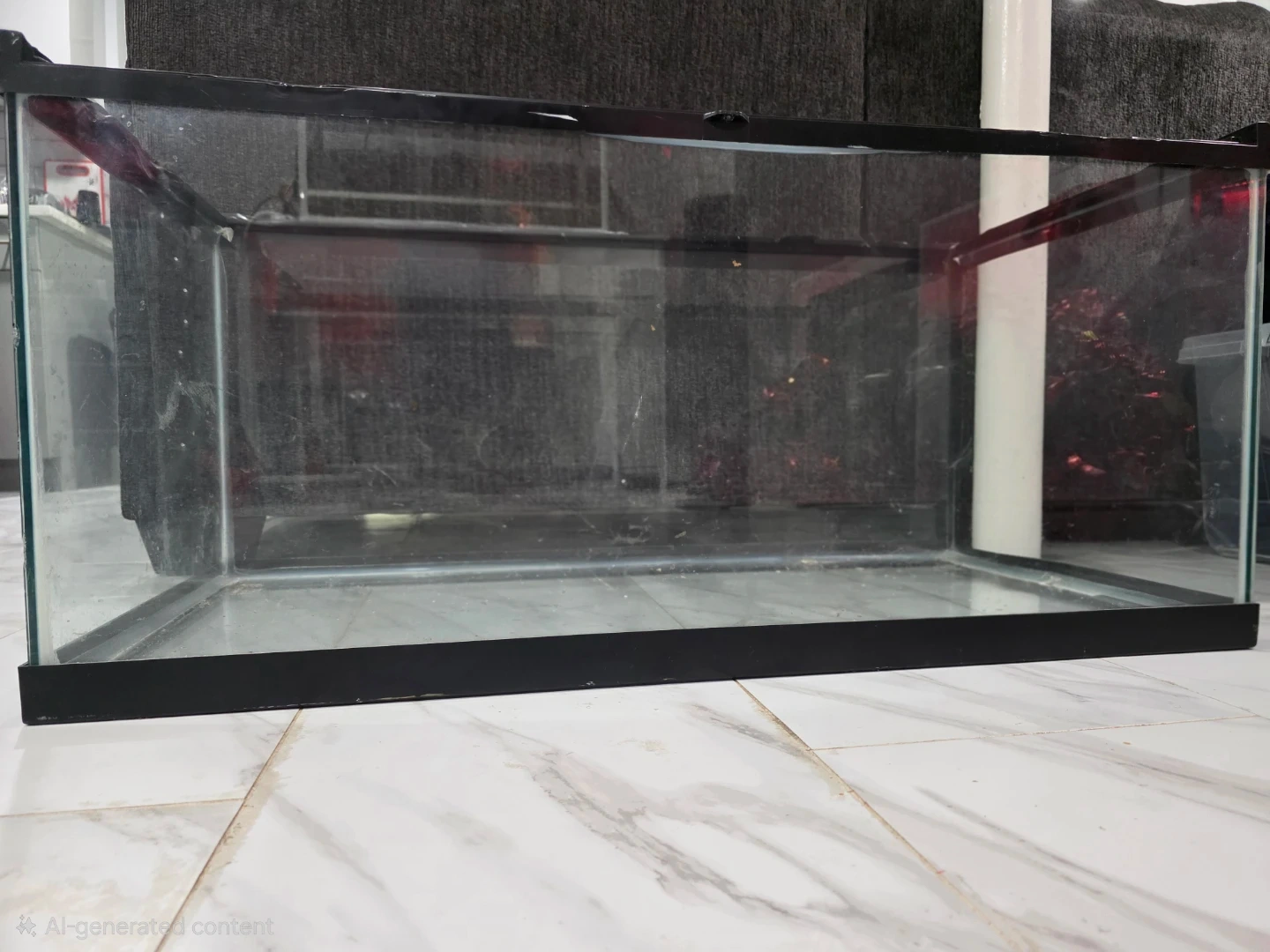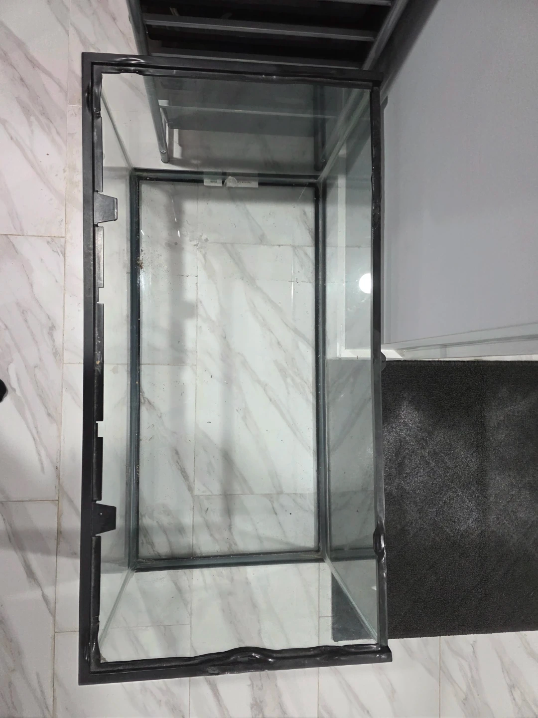 This is a used glass terrarium or aquarium tank. It's constructed from durable glass with a black frame. Dimensions are approximately 30 inches long, 12 inches wide, and 12 inches tall. This tank is suitable for reptiles, amphibians, or small aquatic pets.