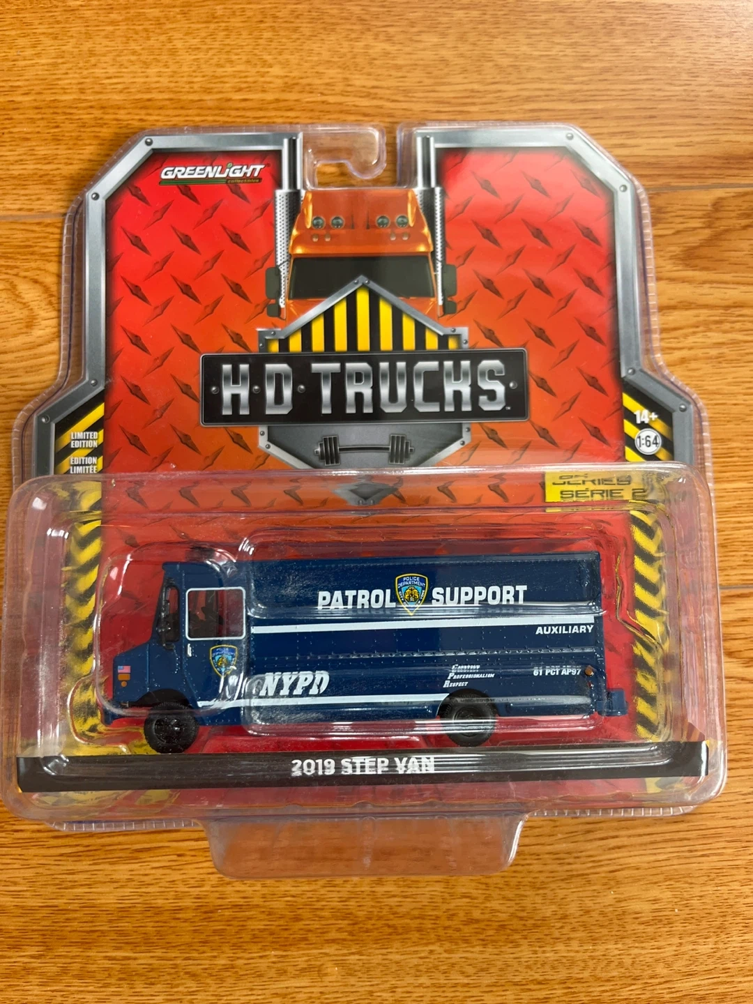 Greenlight HD Trucks 2019 Step Van diecast model. This limited edition collectible features NYPD Patrol Support markings and a 1:64 scale. It's a great addition for any collector's display!