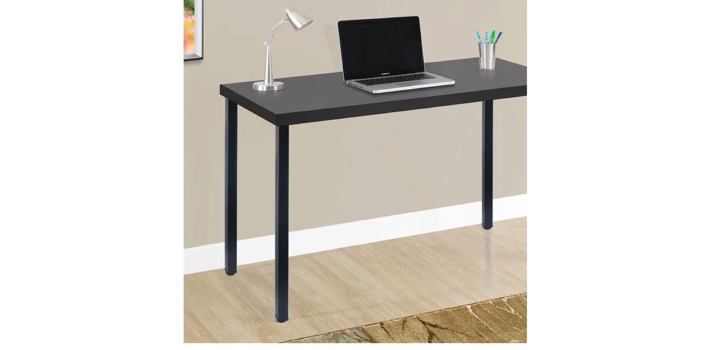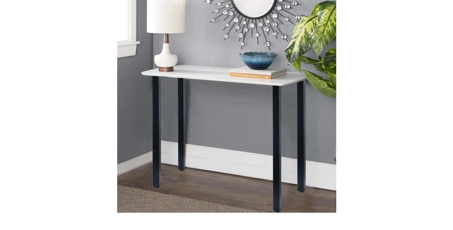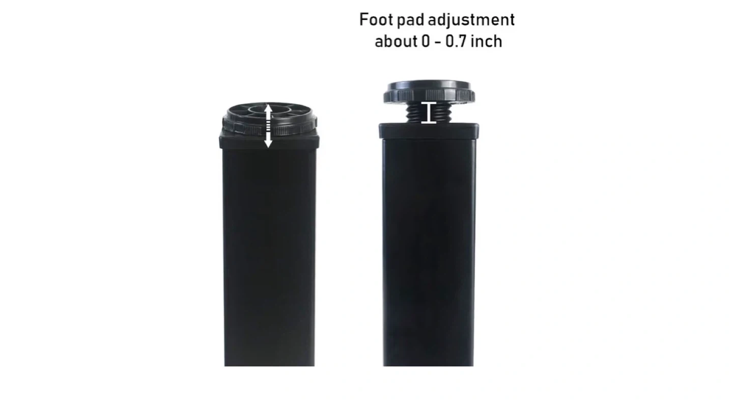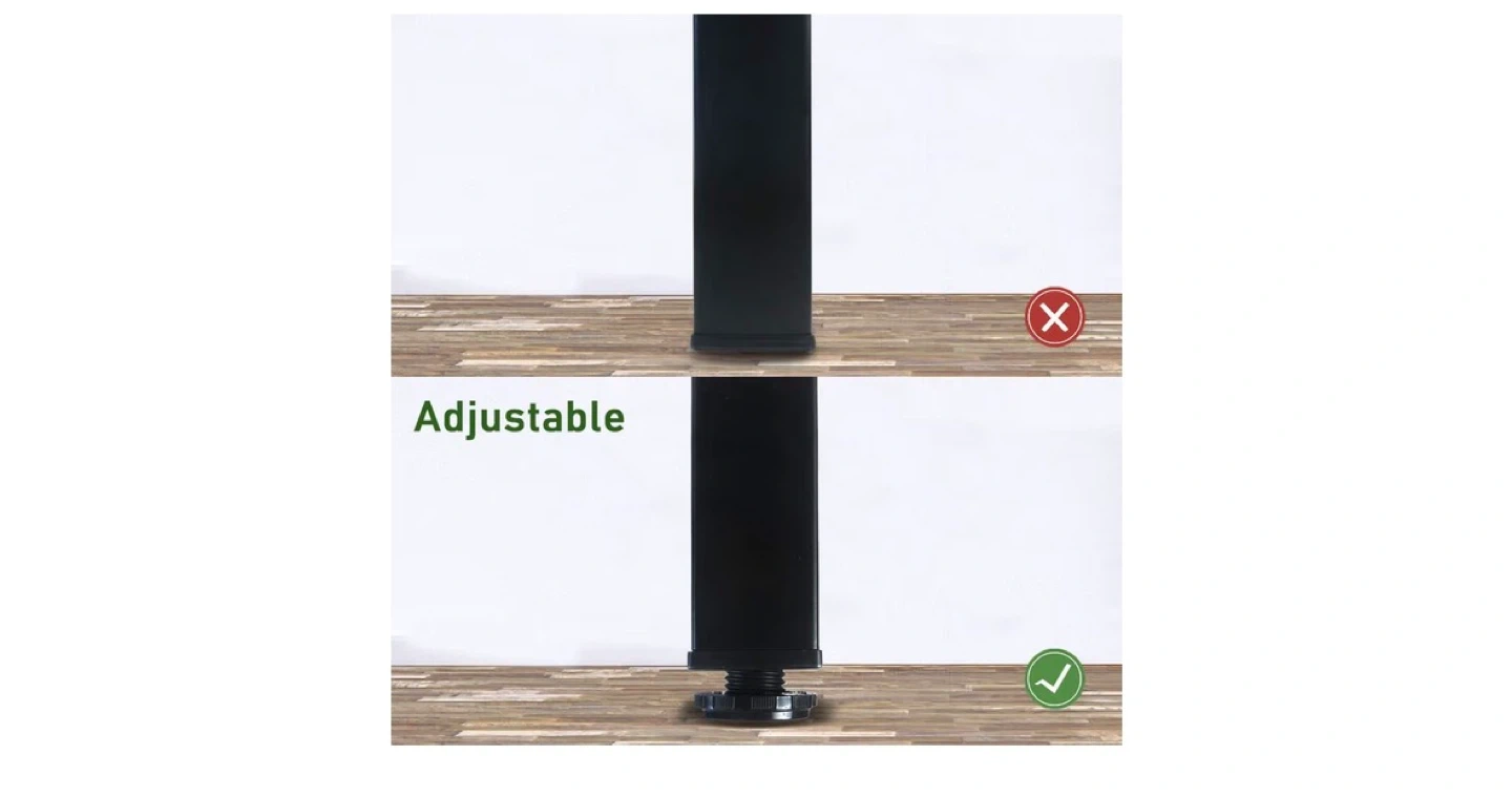 Four black metal table legs, each 32 inches tall. These legs are square and come with adjustable foot pads for stability. Screws and mounting plates are included for easy installation.