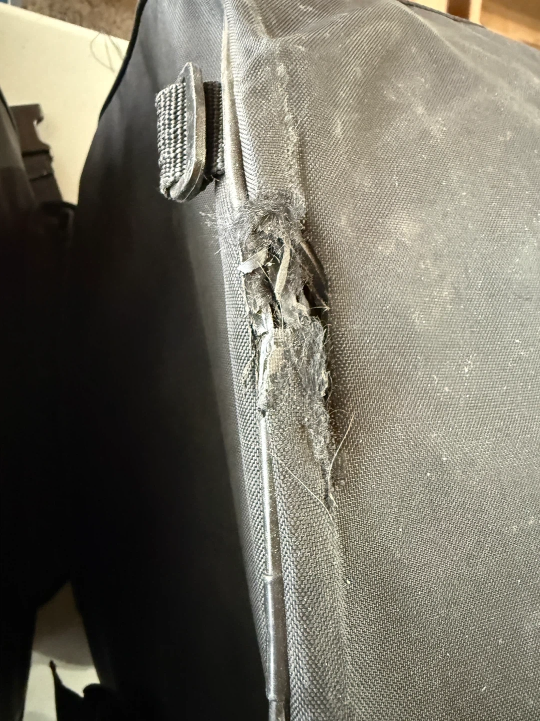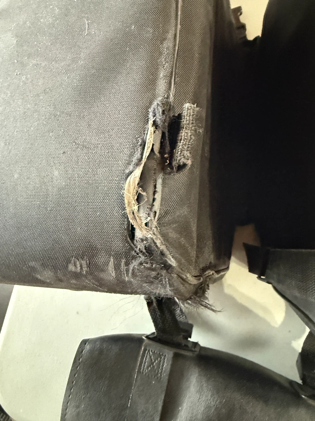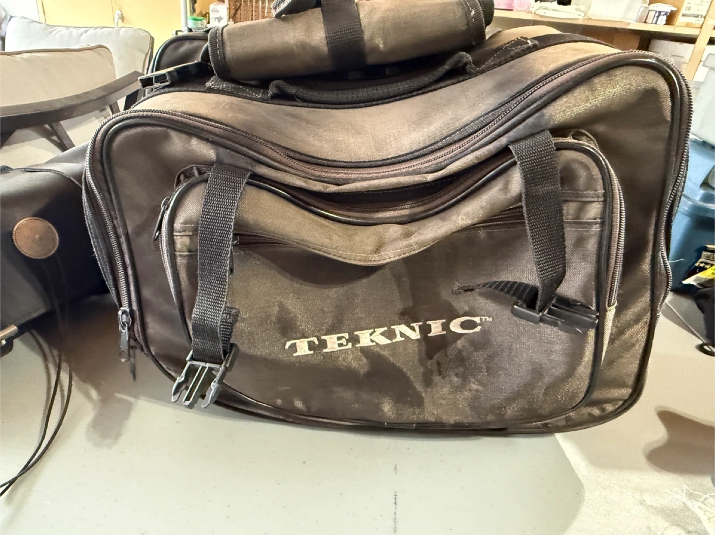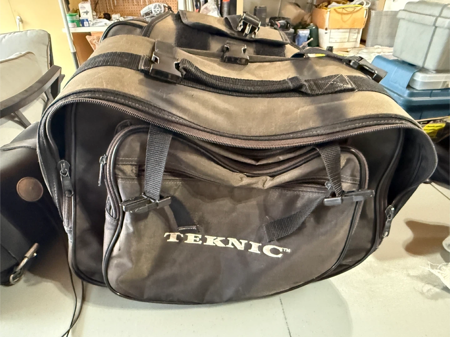 Teknic soft saddlebags for motorcycle use. These bags are made of durable fabric and feature multiple straps and buckles for secure attachment. They offer ample storage for your gear on rides. Some damage from rubbing, good for dry days or a little repair job.