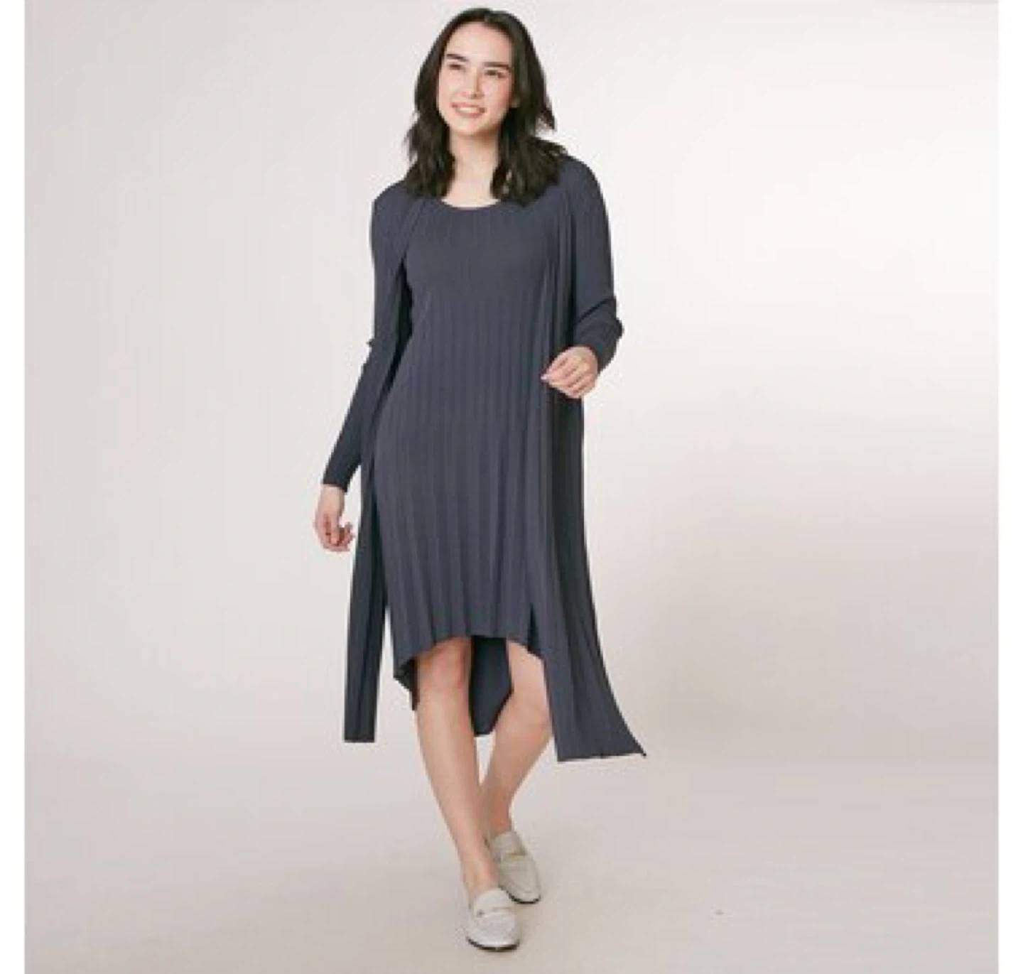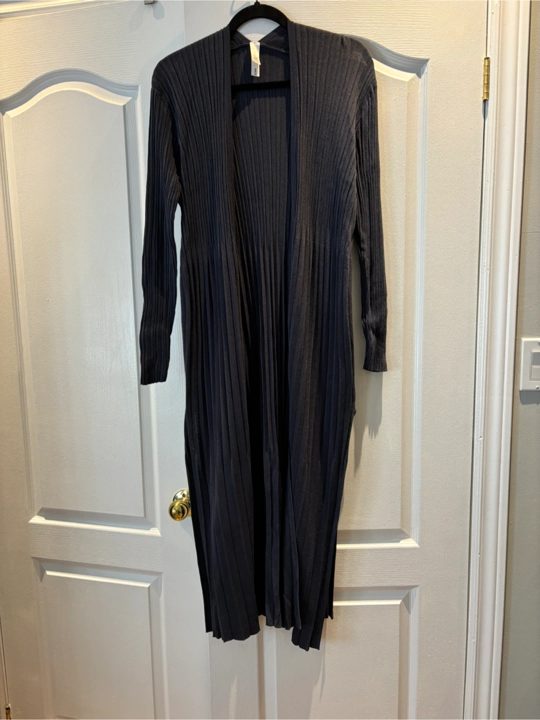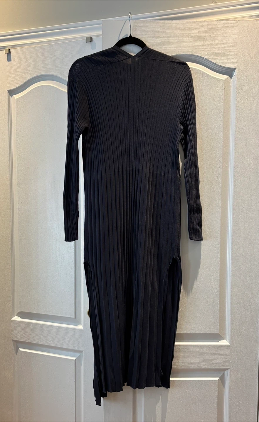 Marla Wynne “inky blue” (grey-blue) ribbed knit cardigan. Size medium. Side slit. Fabric: 63% viscose, 37% nylon. In excellent condition. Matching top in separate post.