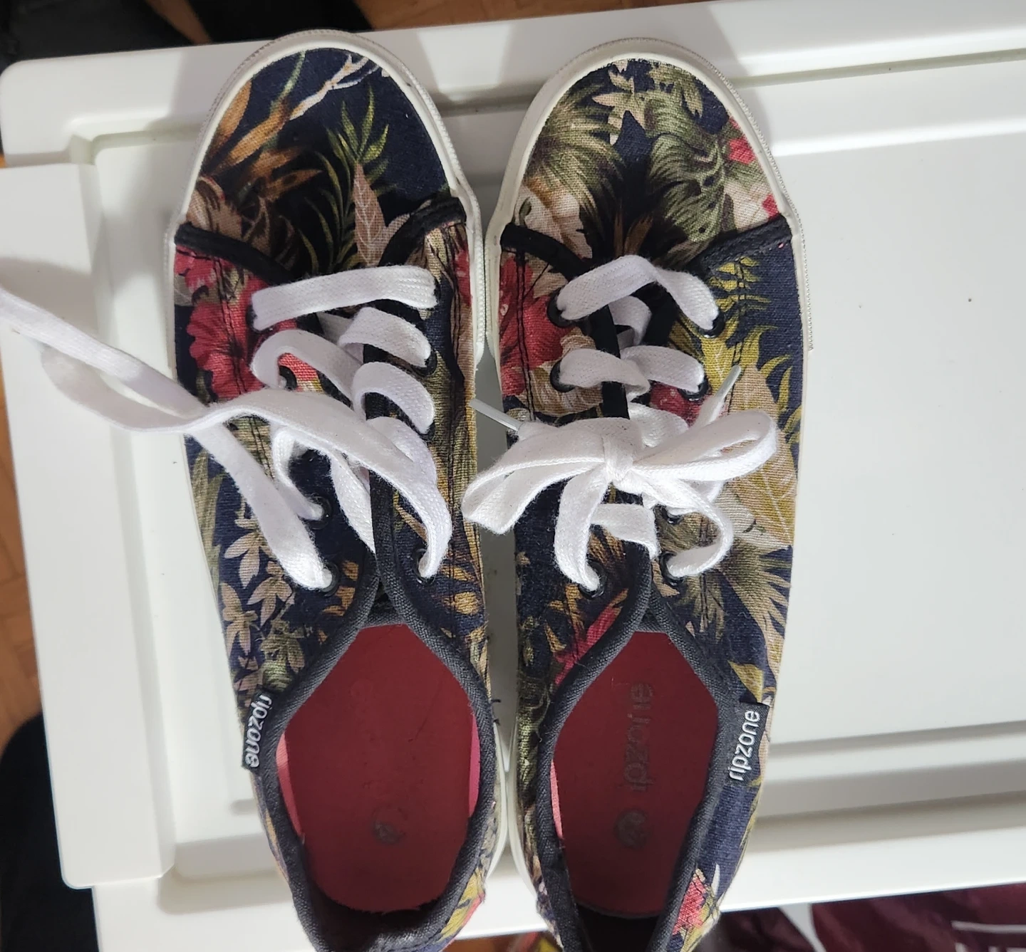 These Ripzone sneakers feature a vibrant floral print with white laces. They're made with a canvas upper and have a comfortable red insole. A great casual shoe for everyday wear!
