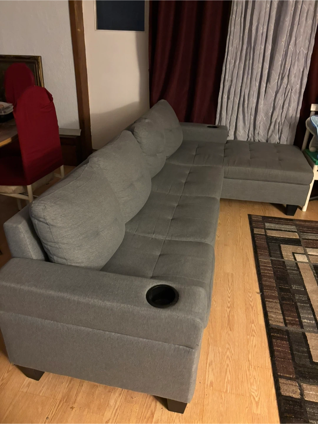 Grey Sectional Sofa with Cup Holders
