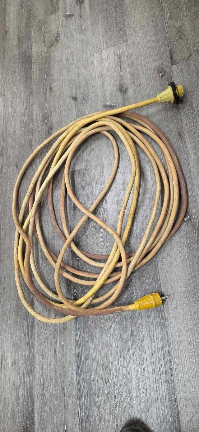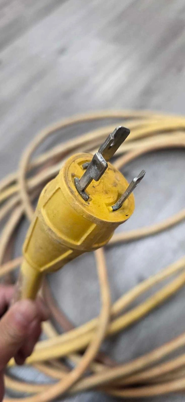 I'm selling a used Marinco 50' PowerCord Plus, a heavy-duty 30A 125V extension cord perfect for RVs, boats, or generators. The cord is 50 feet long, providing ample reach for various power needs. As you can see from the pictures, it is in well used condition.