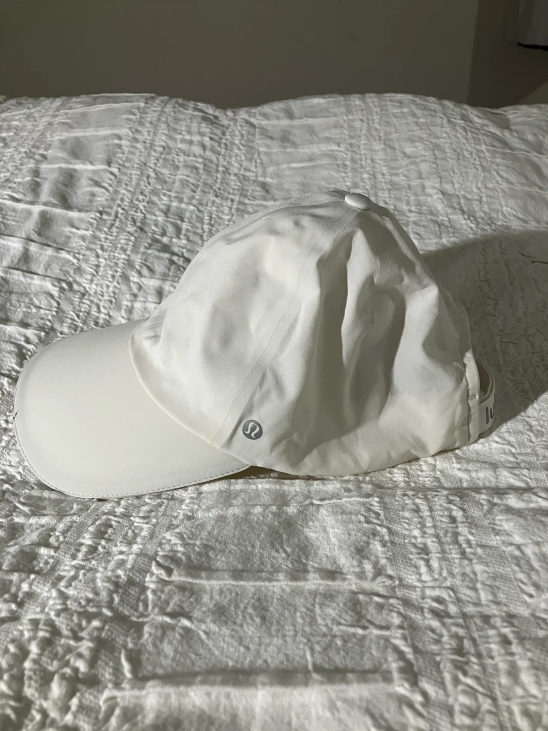 Selling a Lululemon white running hat! It's in great condition and perfect for keeping the sun out of your eyes during your runs or workouts. It's lightweight and comfortable too