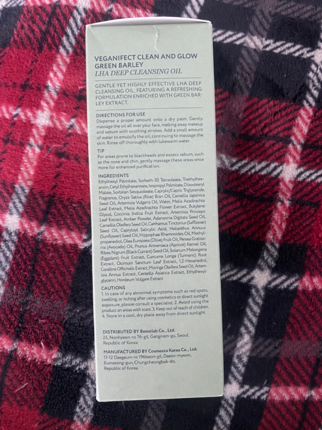 Brand new 205ml Veganifect Clean and Glow Green Barley LHA Deep Cleansing Oil. Washes away makeup and sebum, while providing gentle exfoliation with the help of green barley extract.