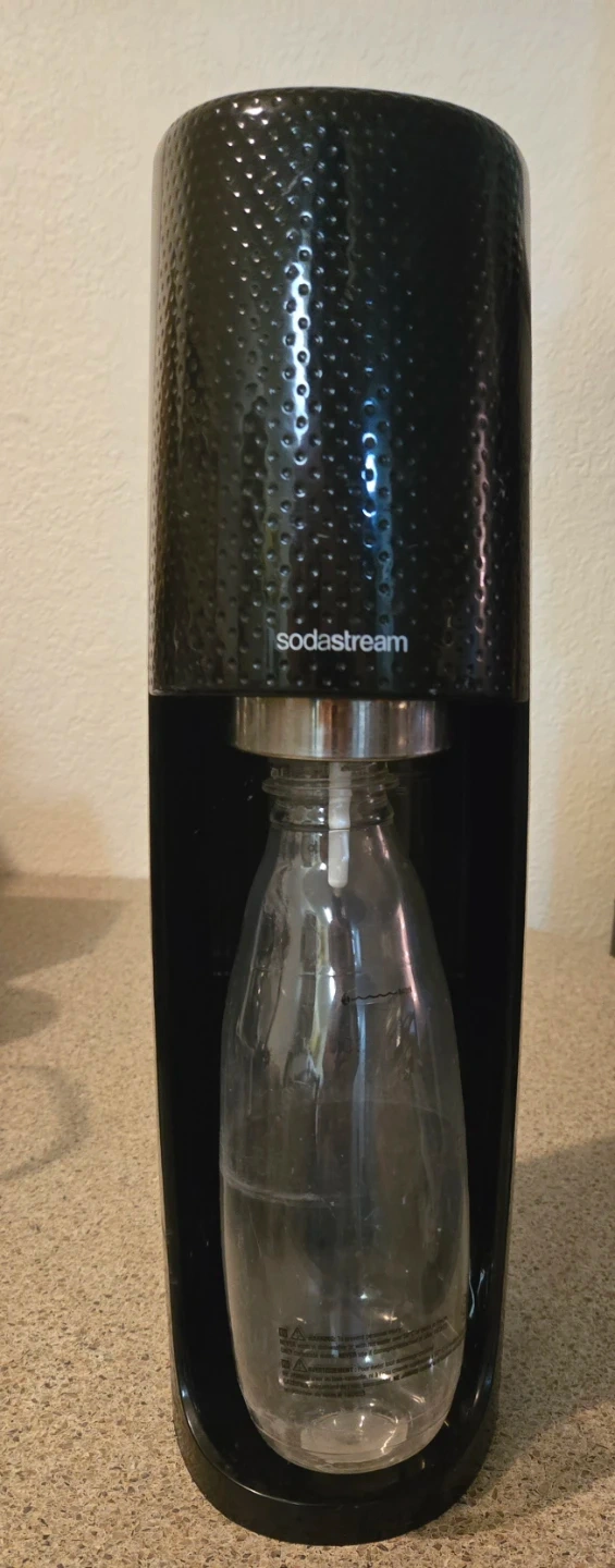 Selling a SodaStream sparkling water maker. It's in good condition and ready to make bubbly drinks! It includes the bottle as pictured. And CO2 canister