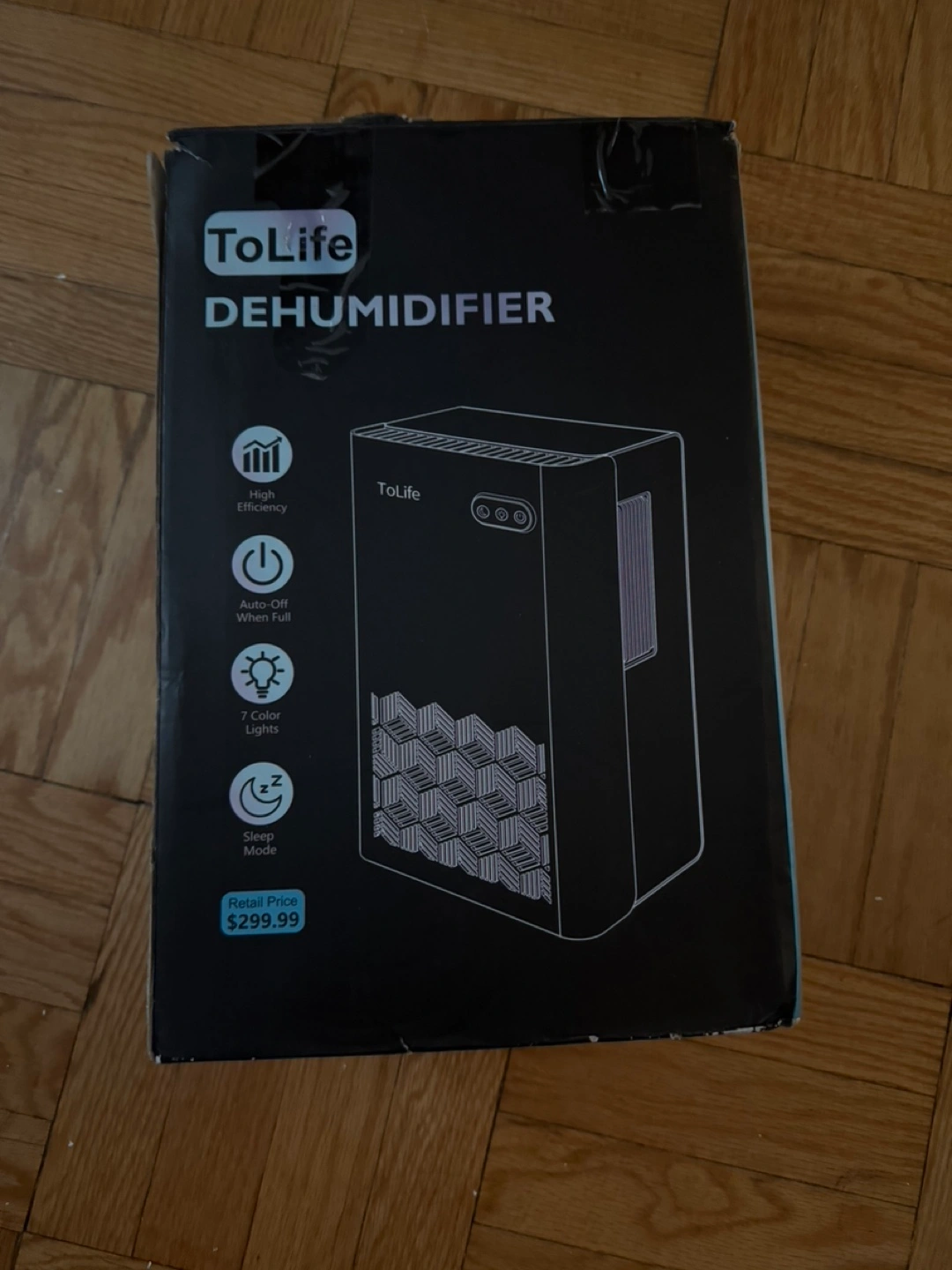 ToLife dehumidifier. Great for smaller spaces. Features include high efficiency, auto-off when full. Comes in original box.