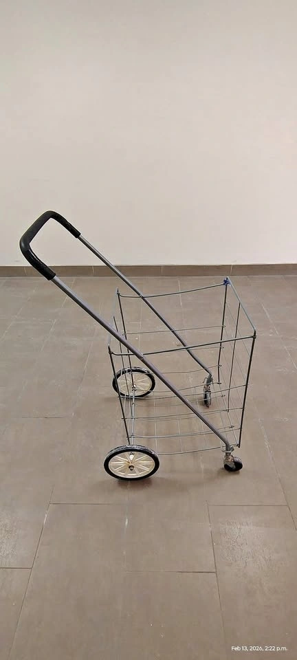 Extra large metal utility cart in good working condition. Perfect for grocery runs, laundry transport, apartment moves, cleaning supplies, garage or workshop use, or for seniors or anyone who wants to save their back. Sturdy metal frame with large rear wheels for smooth rolling and front swivel wheels for easy steering. Lightweight but strong. It’s a bigger size cart — holds a lot more than the typical small grocery versions. Clean and ready to go.