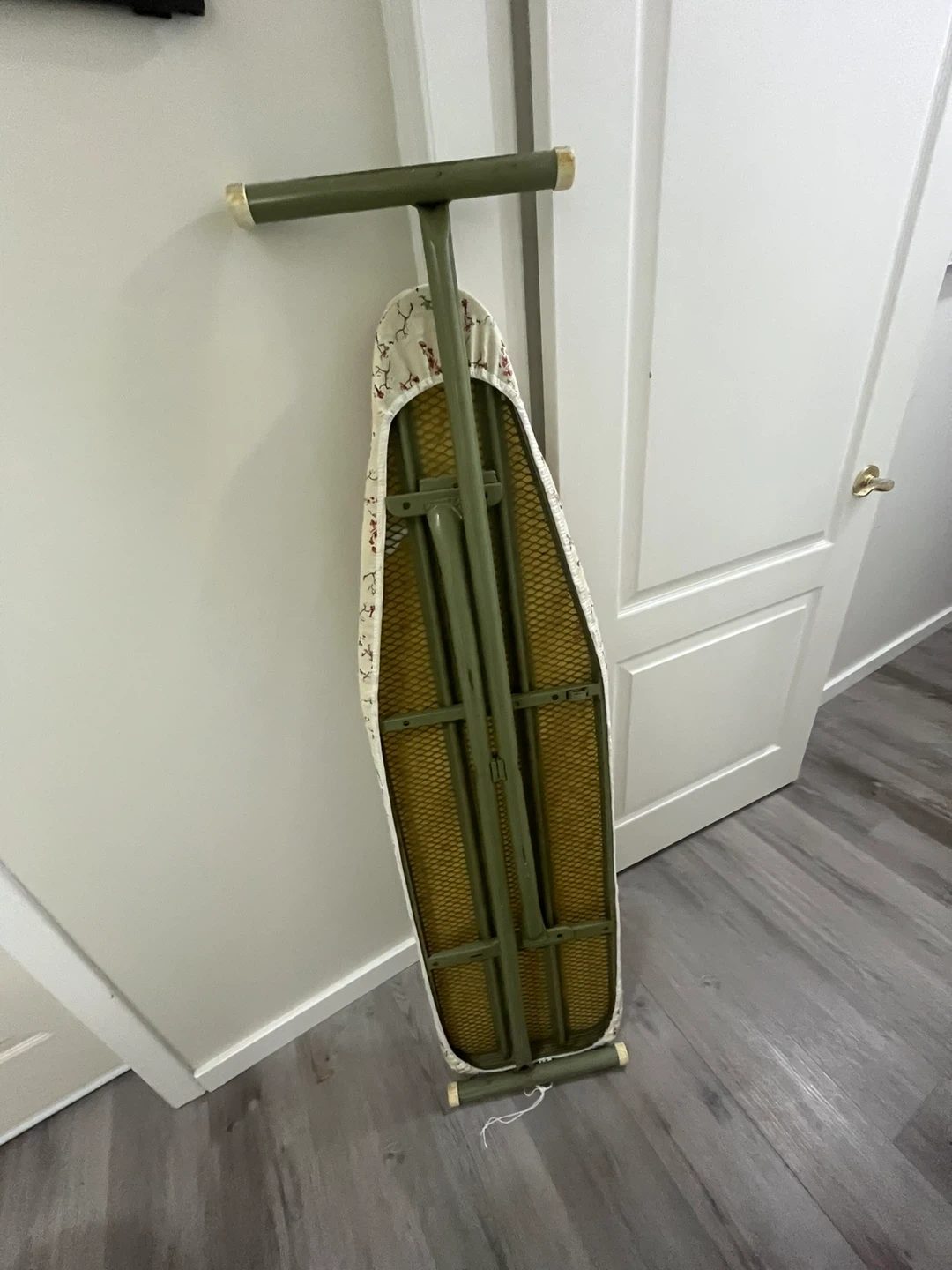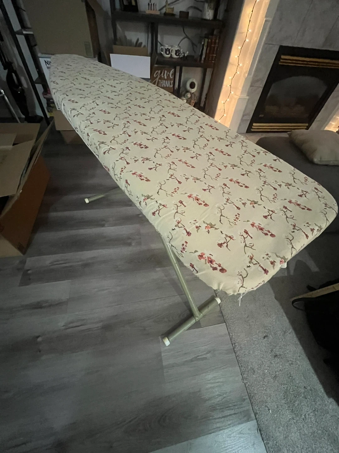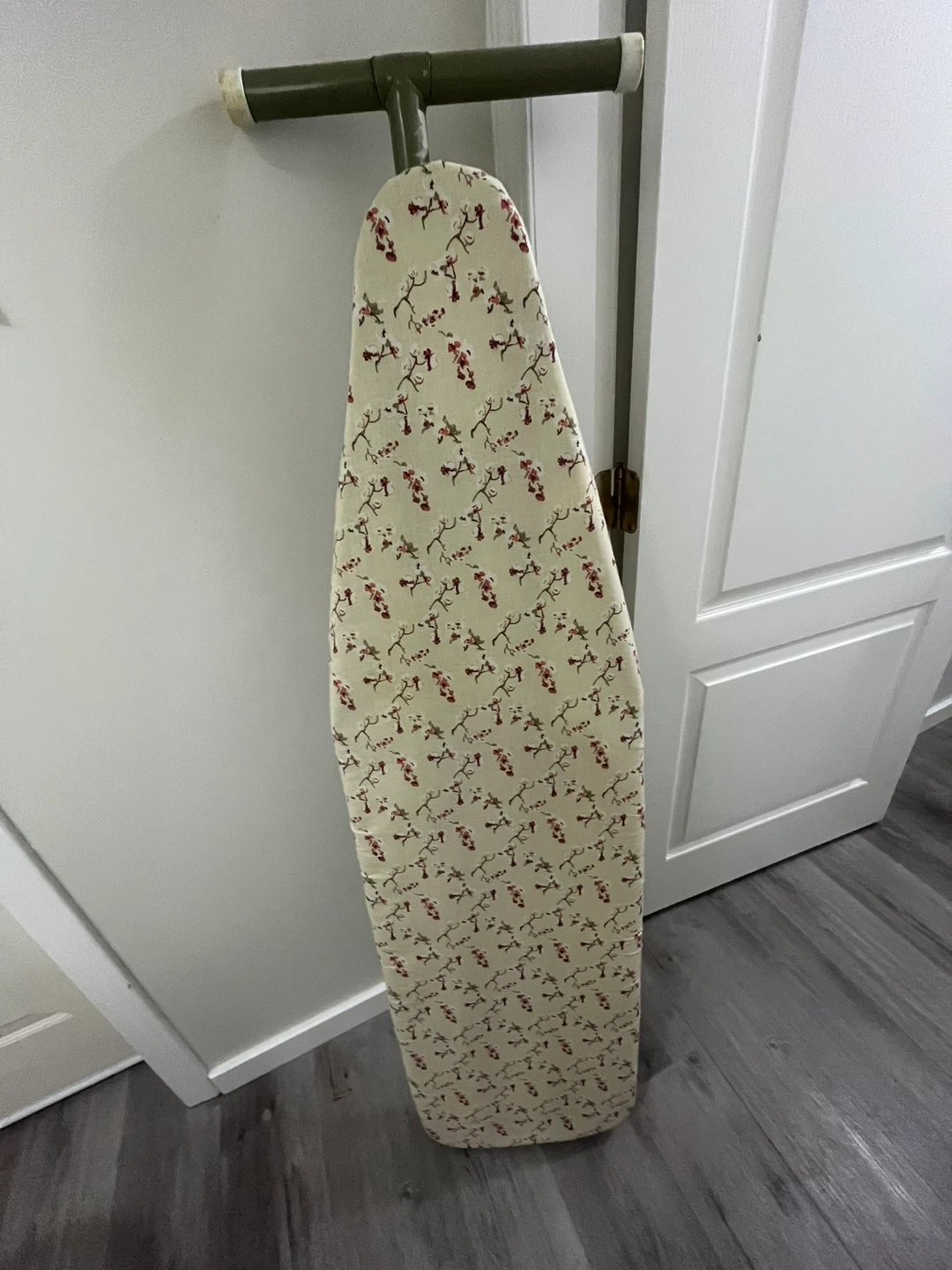 This is a standard size ironing board with a pretty floral pattern cover. It's a sturdy metal construction and folds for easy storage. This board is great for everyday laundry needs!