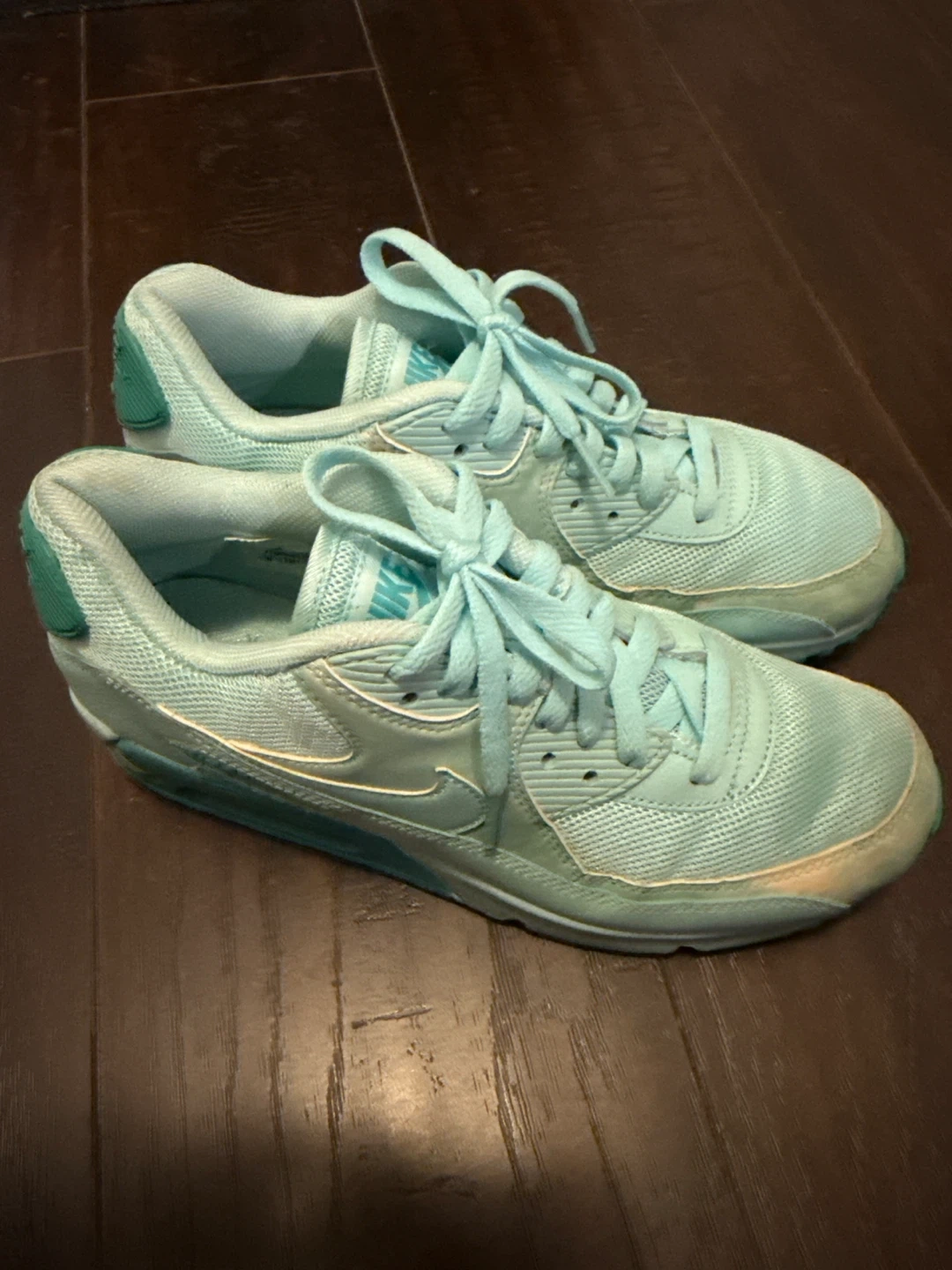 Selling a pair of Nike Air Max 90 sneakers in a lovely turquoise colour! They're in a very good condition, perfect for adding a pop of colour to your everyday outfits