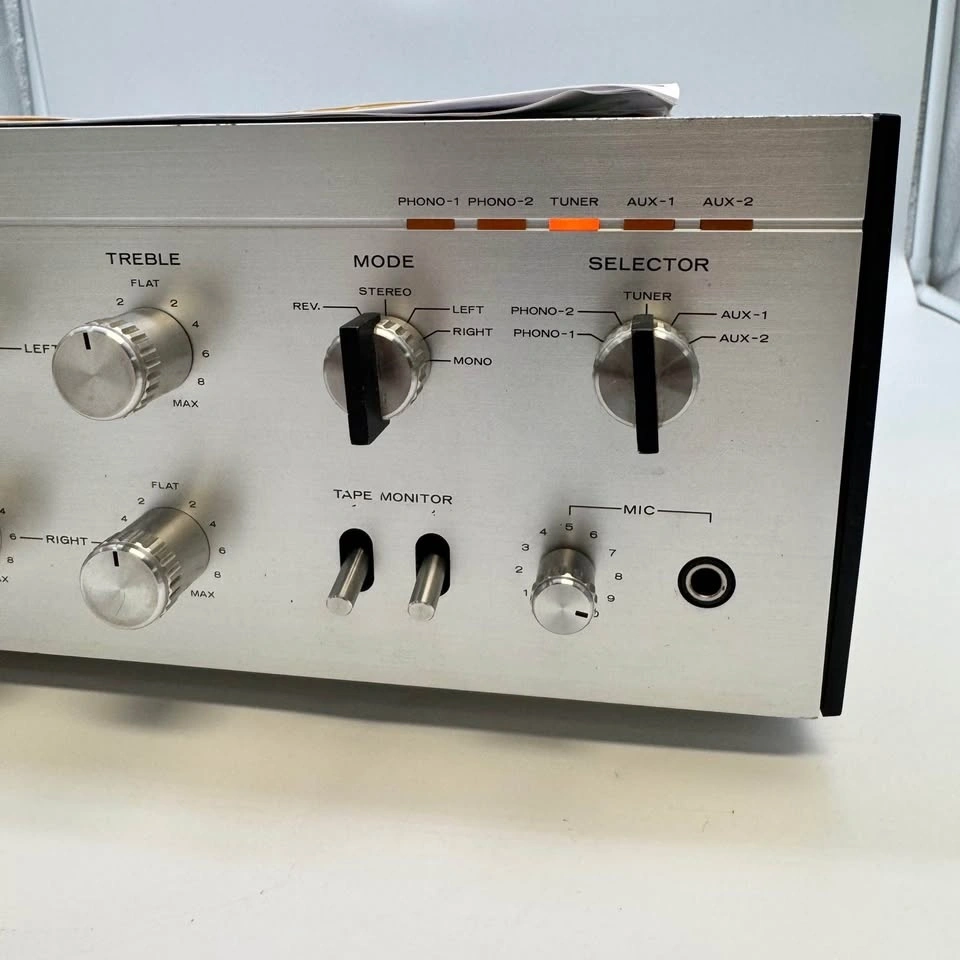 Classic mid-1970s solid-state integrated amplifier with a silver faceplate and real wood cabinet. Fully tested and working with great sound from both channels. Includes original operating manuals – a nice bonus for collectors.