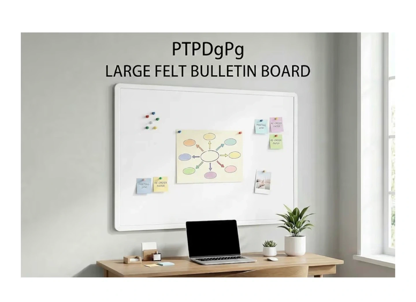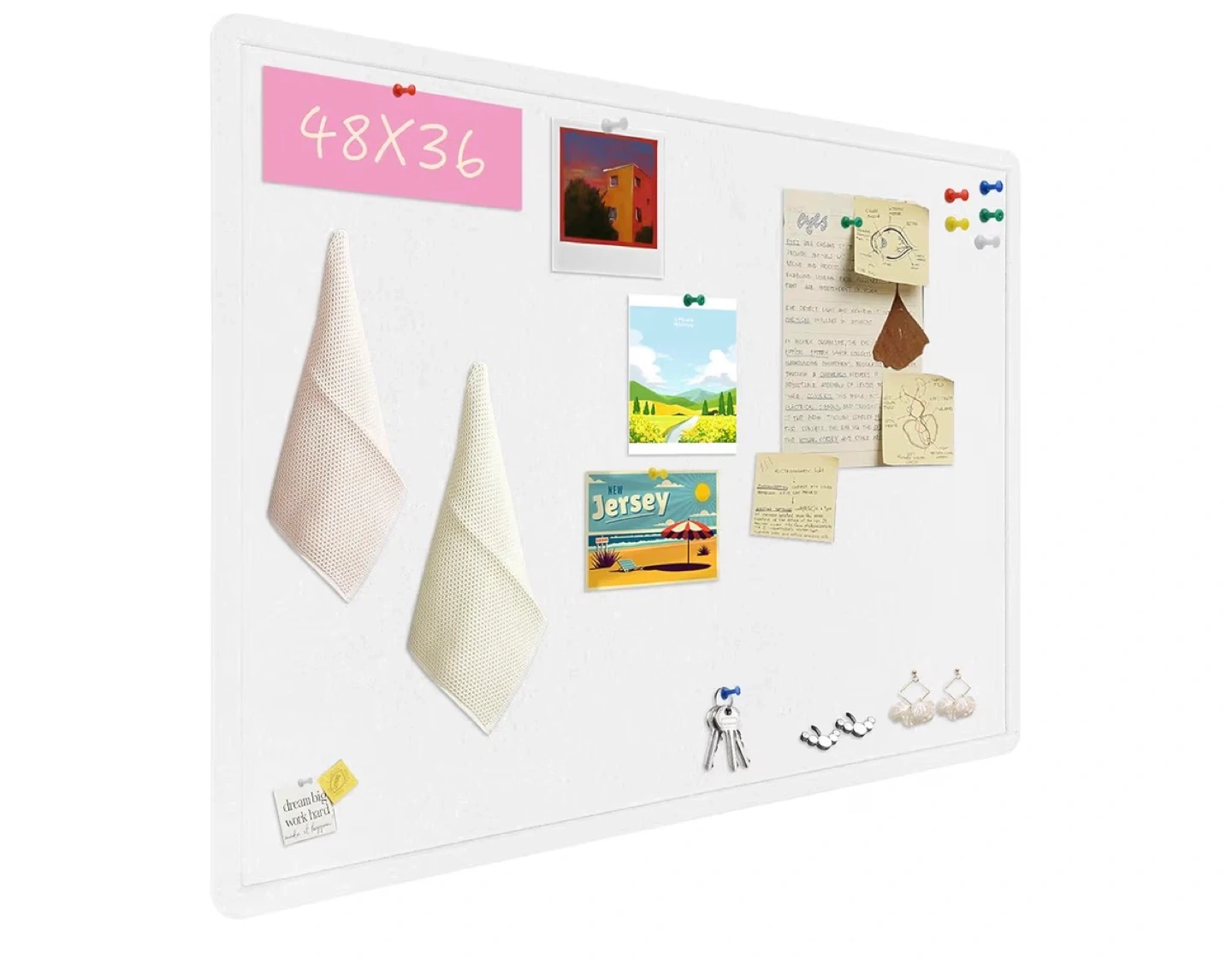 This is a large felt bulletin board measuring 47.3 inches by 35.5 inches. It includes 30 multi-coloured pins for use. The felt material is 9mm thick.