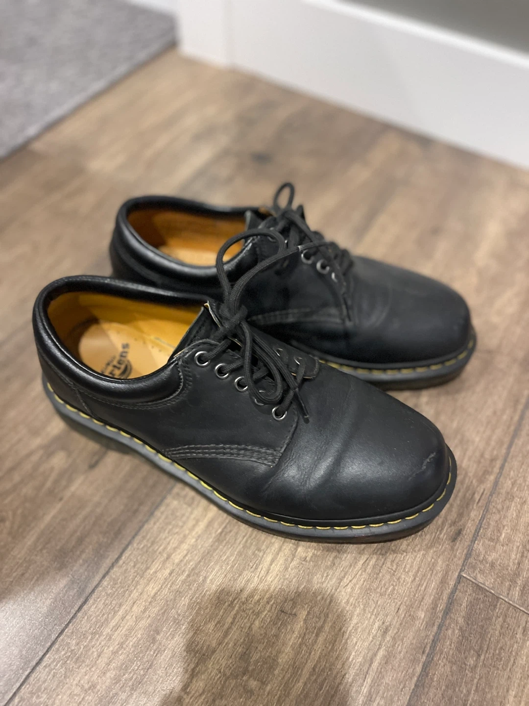 Dr. Martens 8053 black leather shoes. These are a classic Oxford style with air-cushioned soles. In great condition! To be picked up in Charleswood, near Scotswood area.