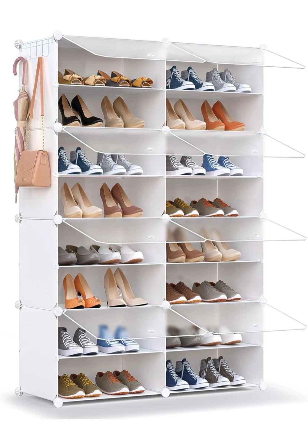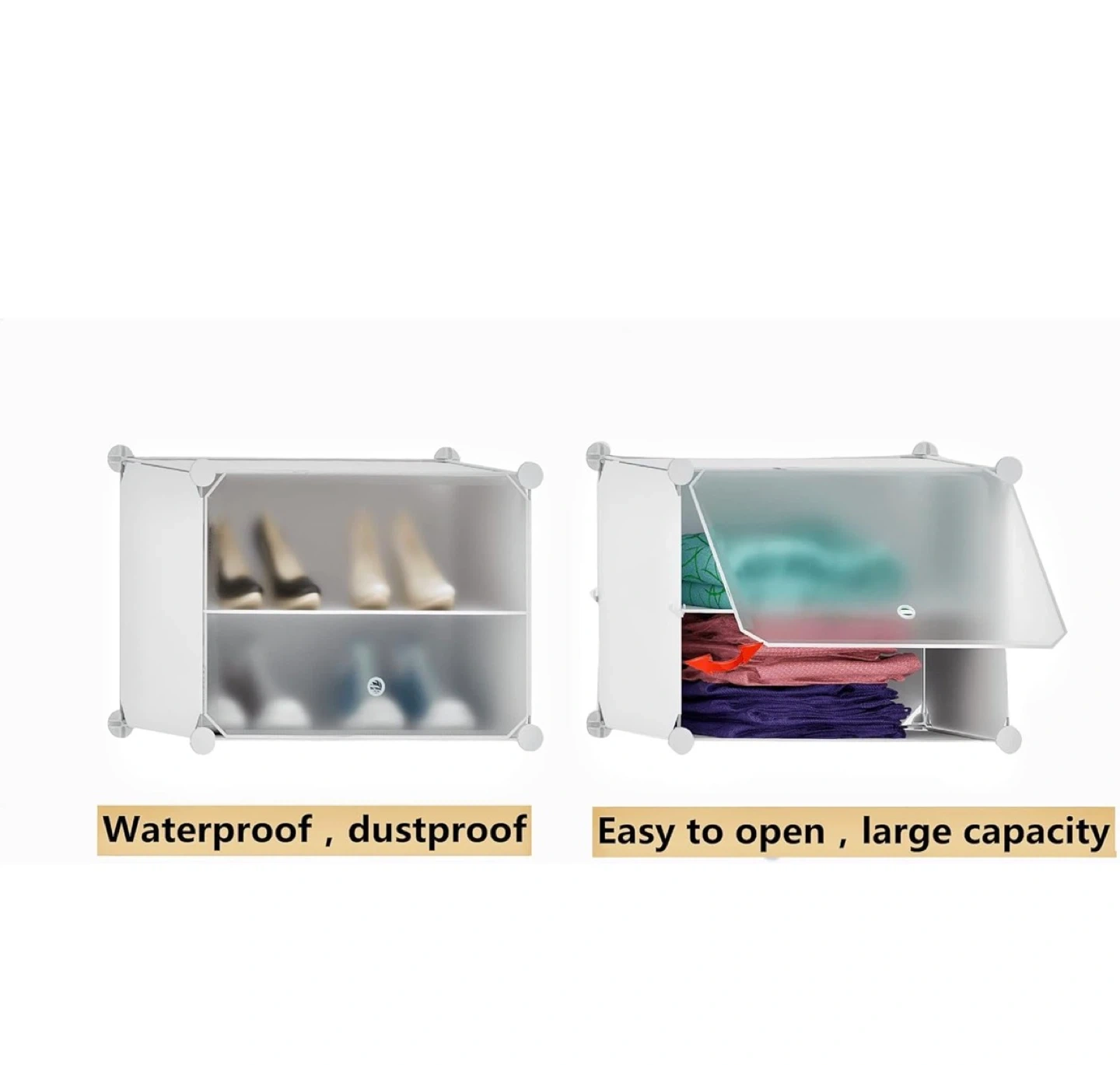This white modular shoe storage organizer offers ample space for your footwear and accessories. It's waterproof and dustproof, keeping your items protected. The units are easy to assemble and offer large capacity storage.