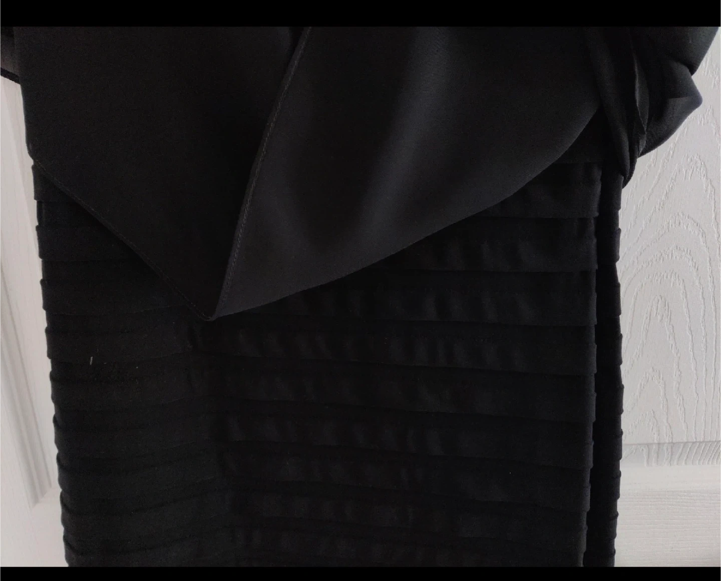 Elegant black dress by Cartise. It features a chiffon overlay for a sophisticated look. Perfect for a special occasion. Size 8.