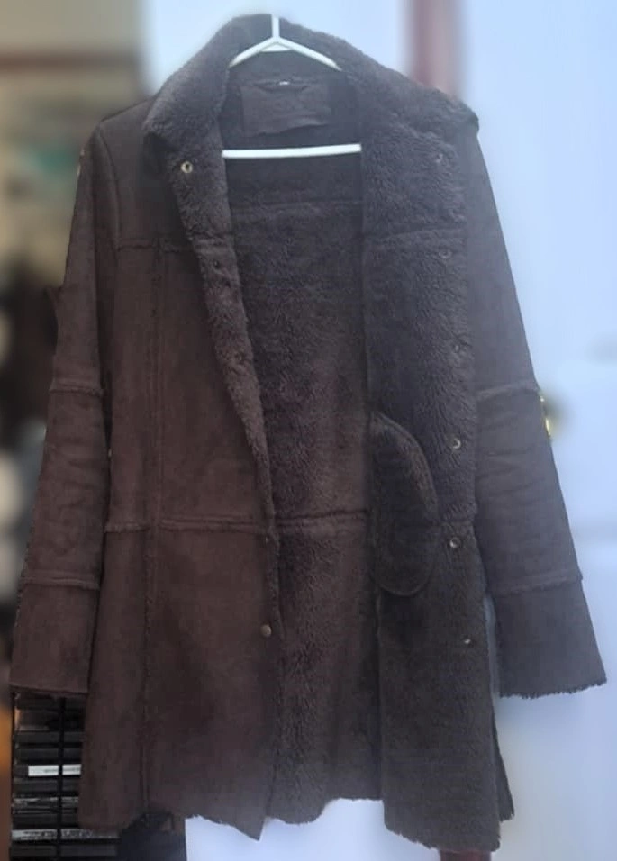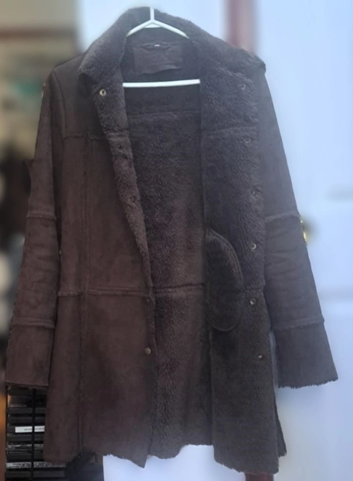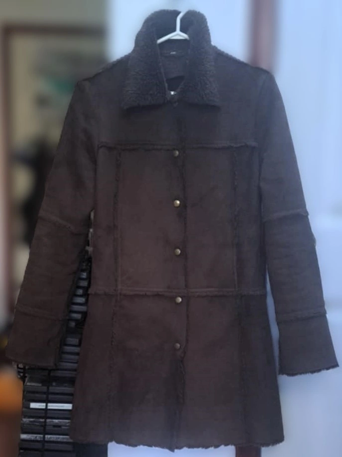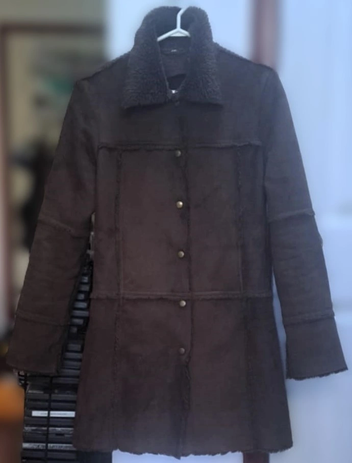 Roxy Brown Suede Coat with a Sherpa Lining Made in Korea