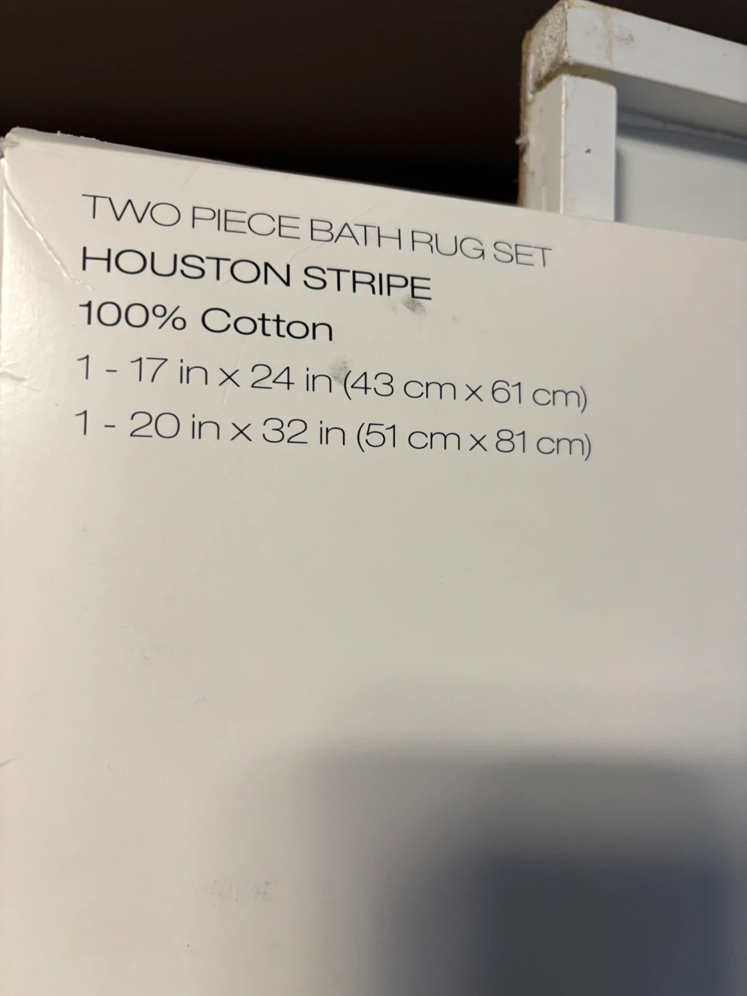 This DKNY two-piece bath rug set features the Houston Stripe design. It's made of 100% cotton. Includes one 17 x 24 inch and one 20 x 32 inch rug.