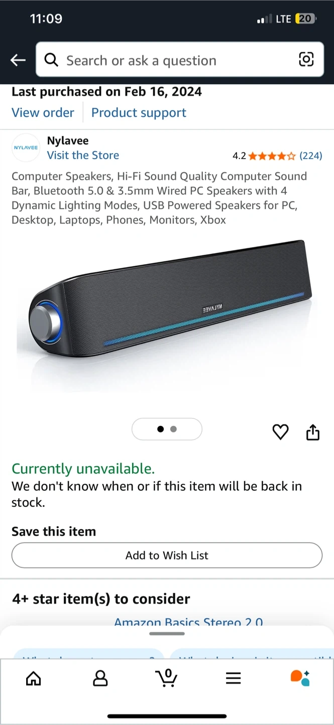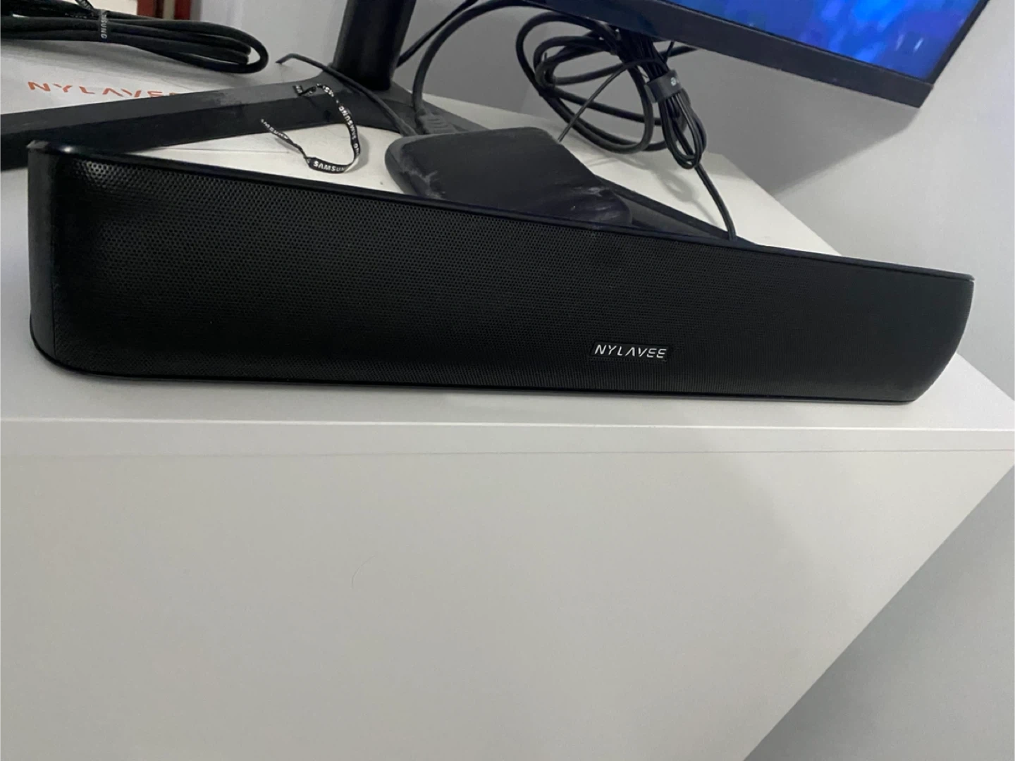This is a Nylavee computer sound bar with hi-fi sound quality. It's USB powered and features Bluetooth 5.0. The speakers offer 4 dynamic lighting modes.