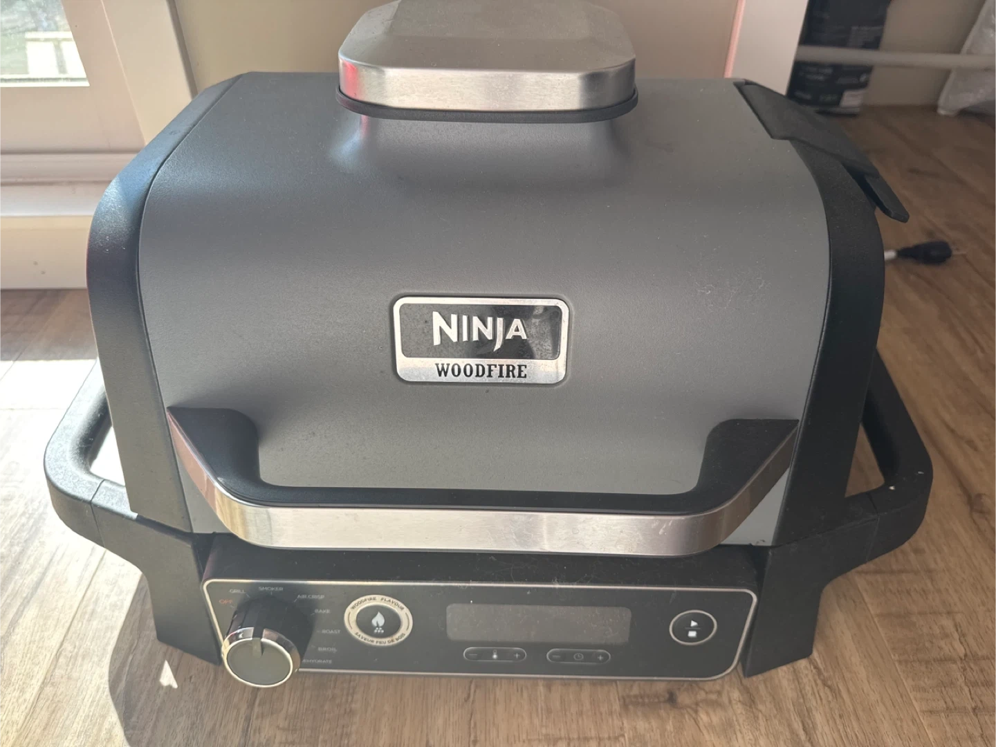 This Ninja Woodfire electric grill and smoker is perfect for outdoor cooking. It offers various cooking functions like grill, smoke, air crisp, bake, roast, broil, and dehydrate. It also comes with a recipe book to get you started!