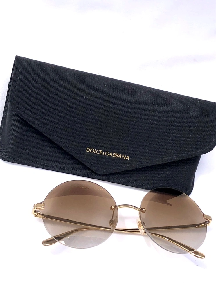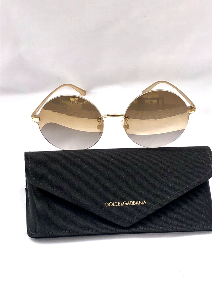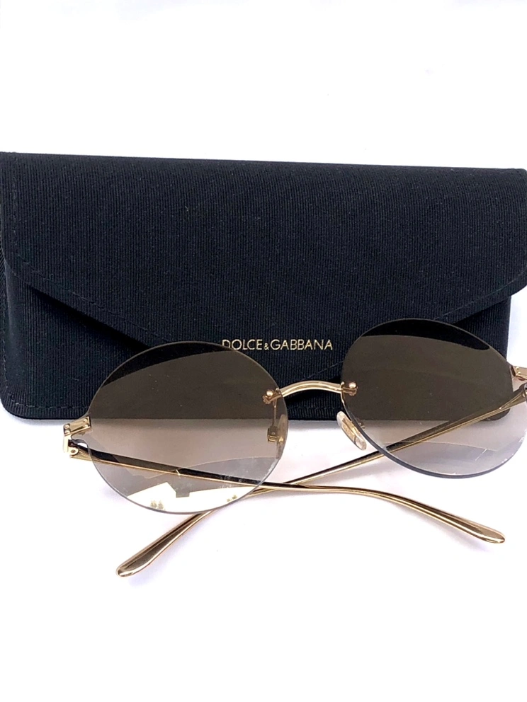 These sunglasses are in excellent condition. They come with a black Dolce & Gabbana case. They have gold frames with a brown gradient lens.