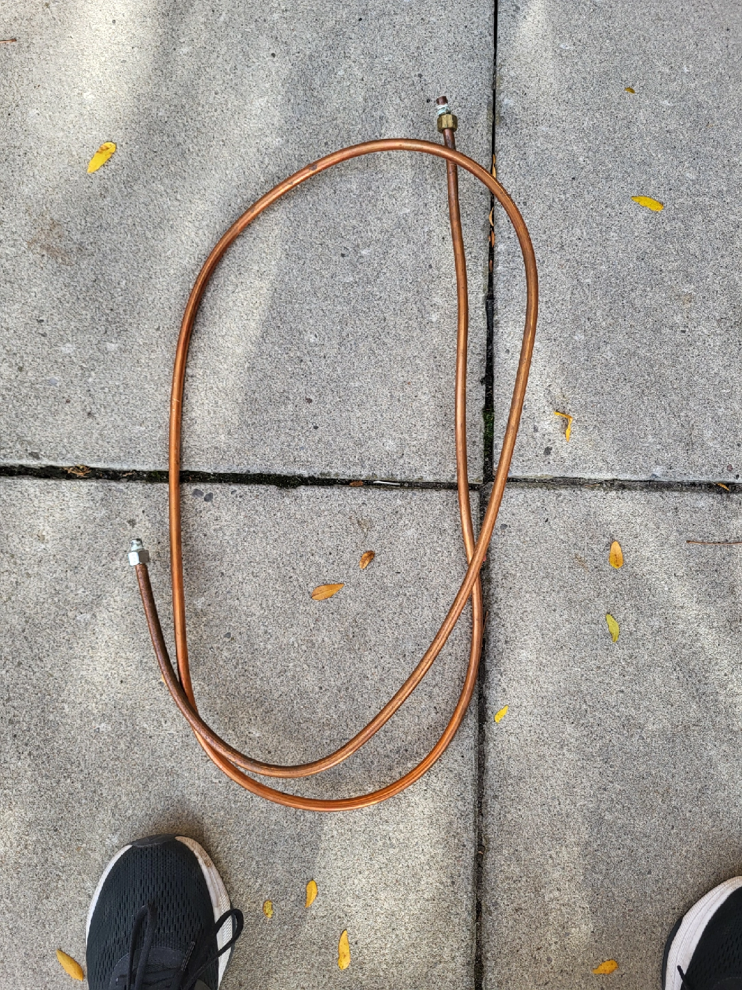 piece of copper pipe. seems to be good to use. if I dont sell it, ill take it to Scrap. about 90 inches long, a diameter of about a quarter of an inch. (measure it when you come to check.)