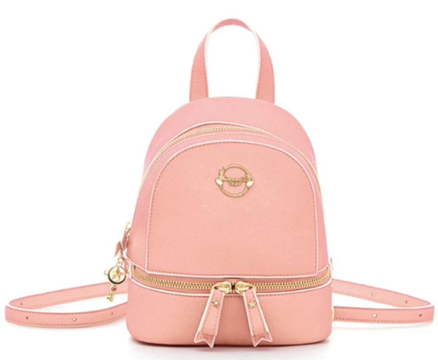This is a deluxe mini backpack styled on card captor Sakura. Beautiful light pink colour with wing symbols on the front. The zipper features a cute pink bow and a wand dangling strap. The inner lining features adorable Kero.