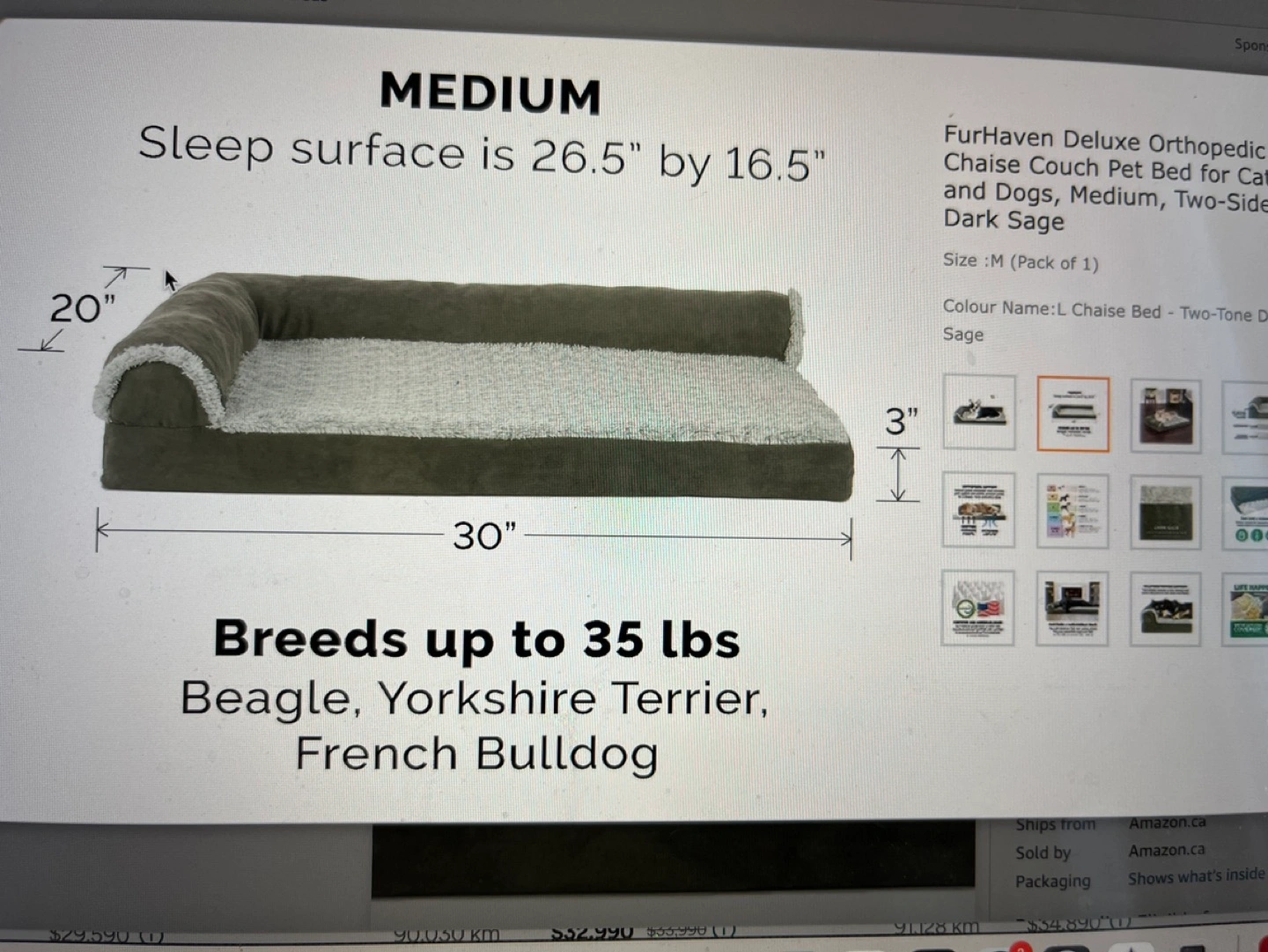FurHaven Deluxe Orthopedic Chaise Couch Pet Bed for Cats and Dogs, Medium, Two-Sided Dark Sage https://a.co/d/dLSsGU5