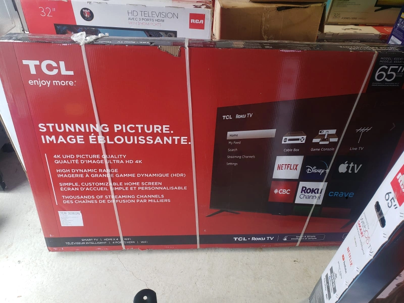 These are all new open box TCL TV SALE 65" 4K UHD HDR ROKU SMART TV.