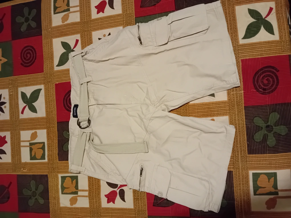 NEW LIGHT CREAM MEN CARGO SHORTS WITH BELT SIZE 34" FOR $25 FIRM